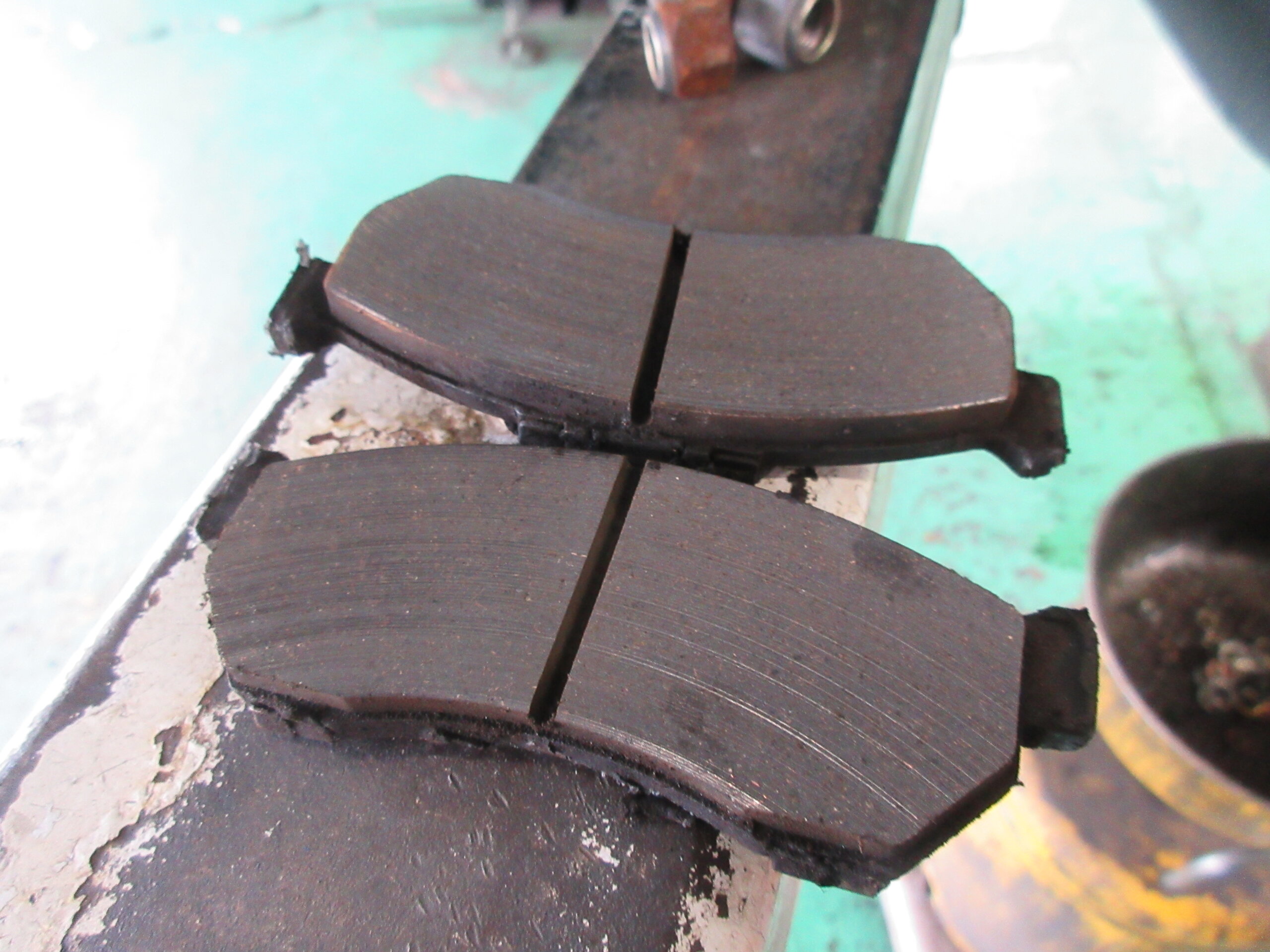 フロントブレーキを確認すると、ディスクローターとブレーキパッドの変摩耗が原因でした。