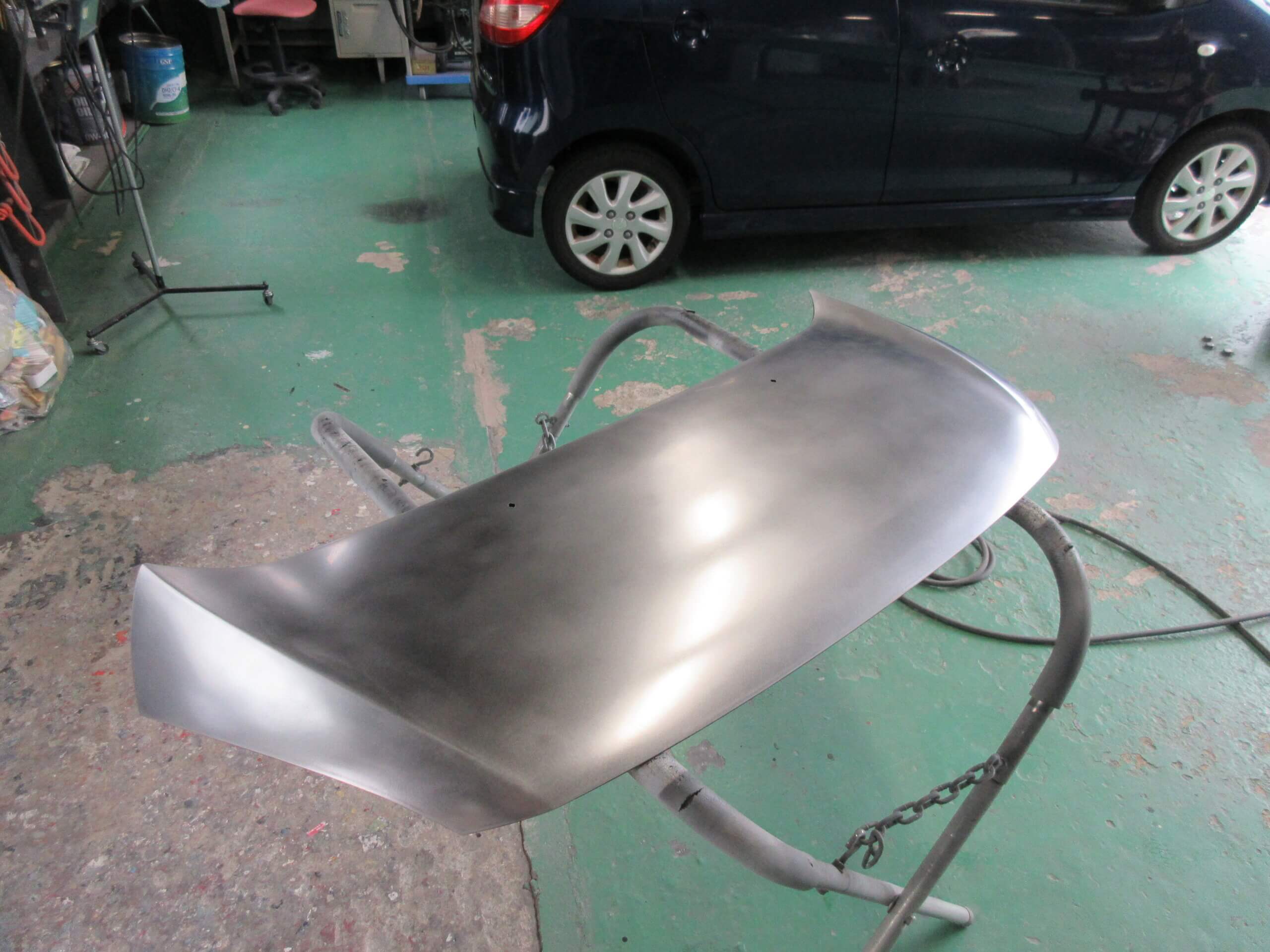 ボンネットを取り外して塗装を完全に除去します。