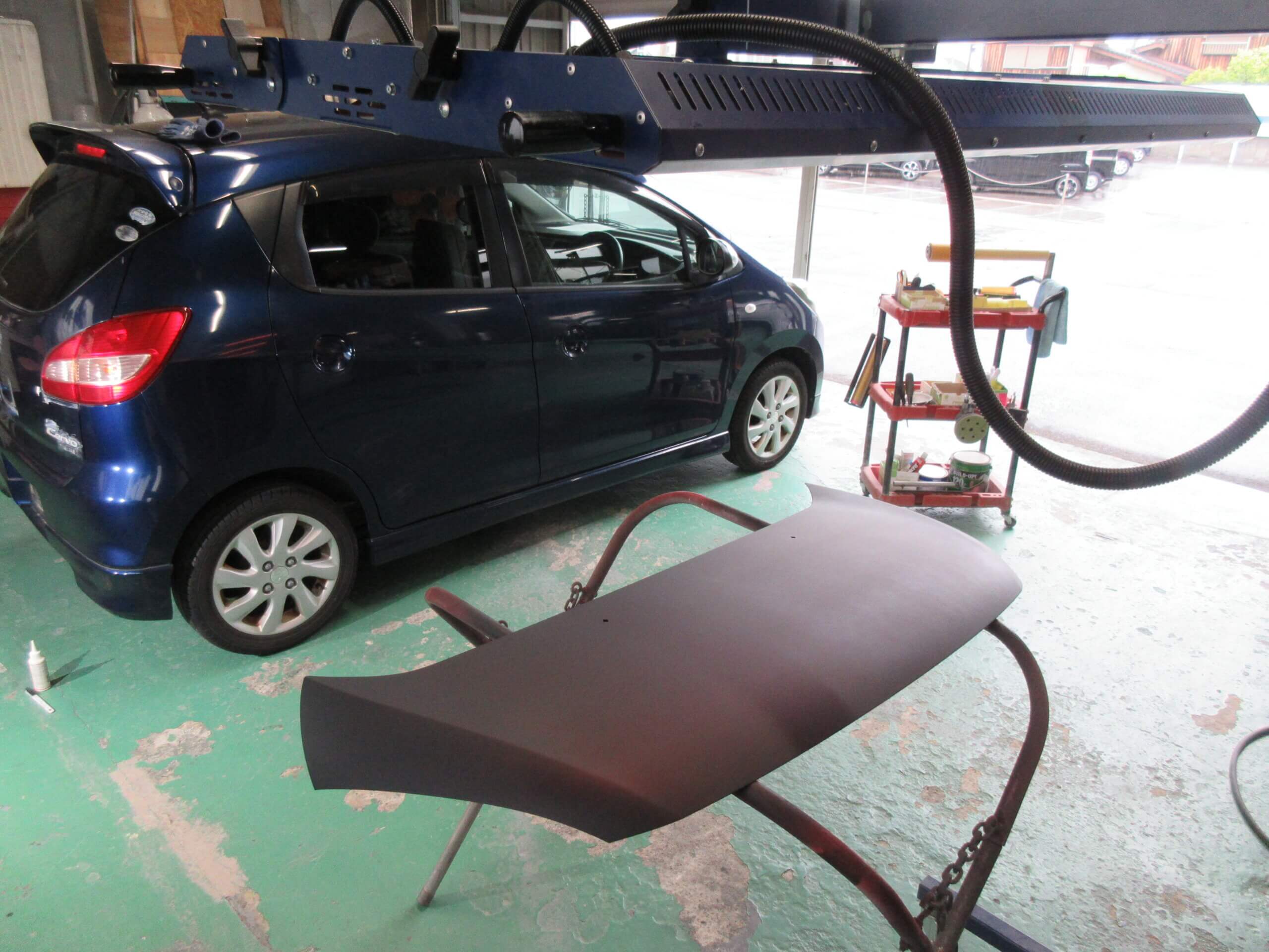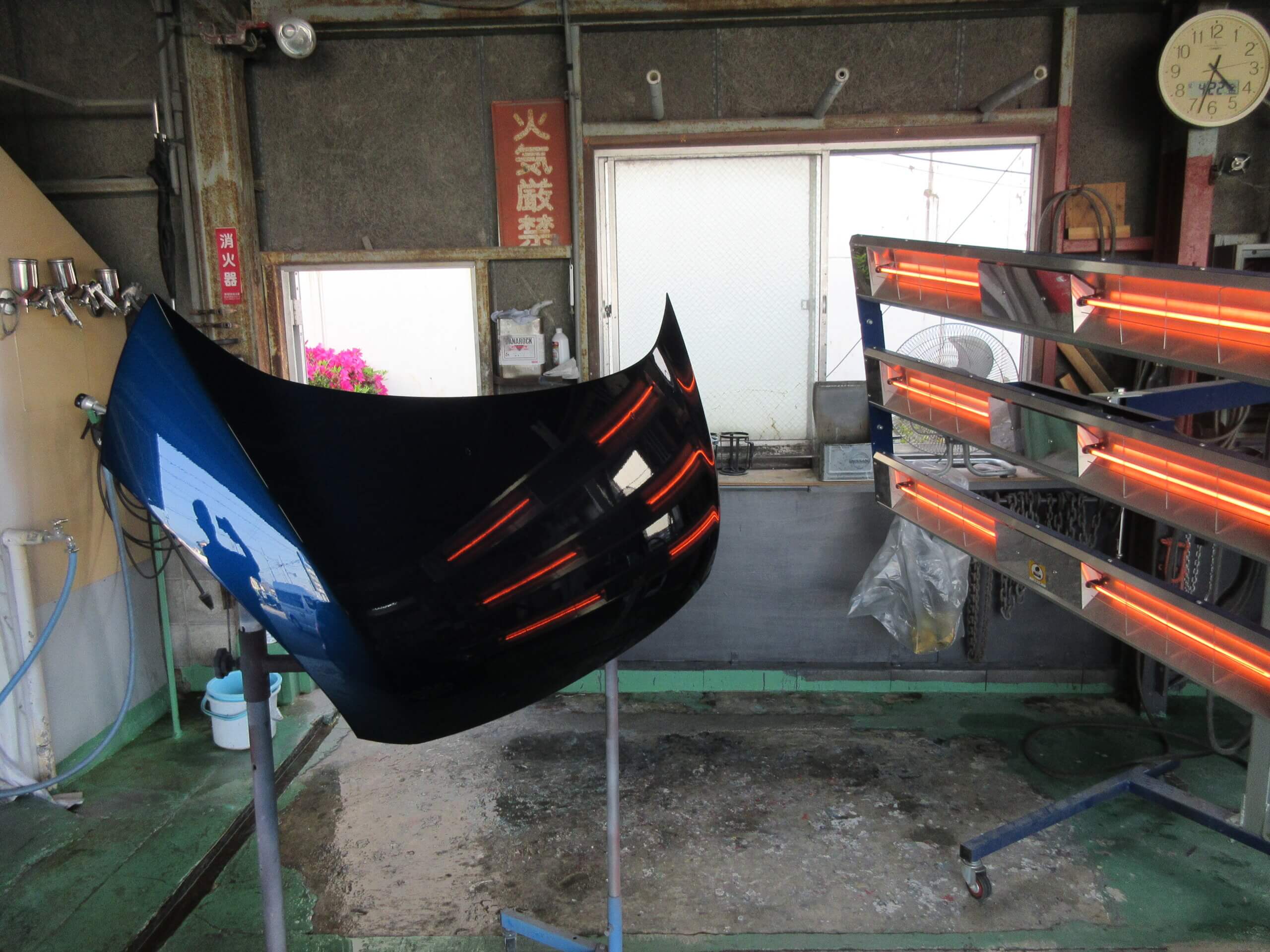 「ボンネットの色が剝げてきた」と言うことで入庫しました。