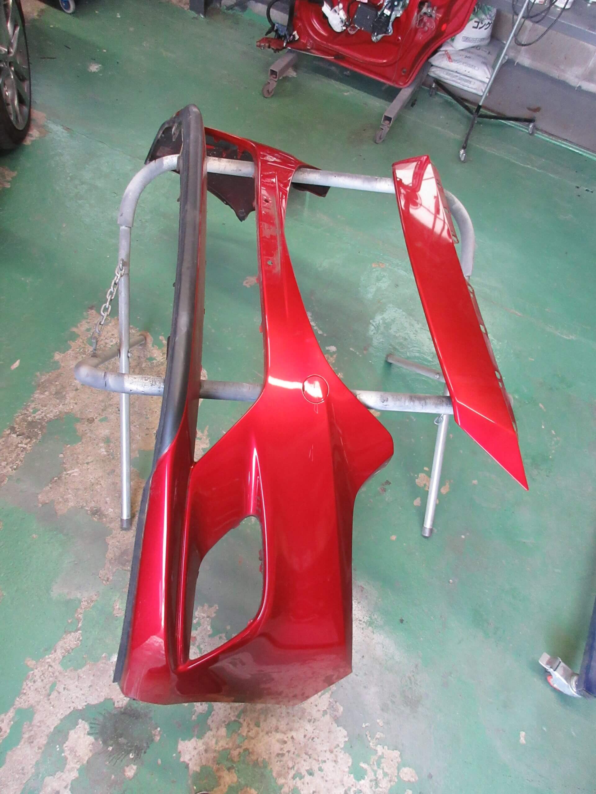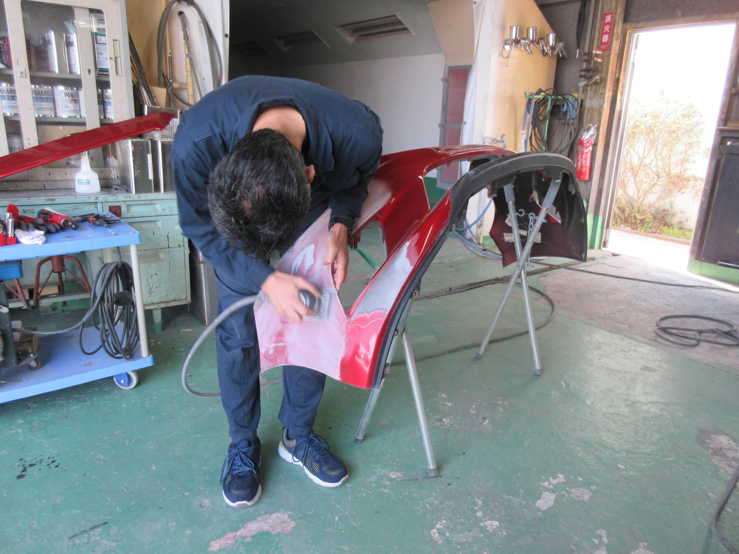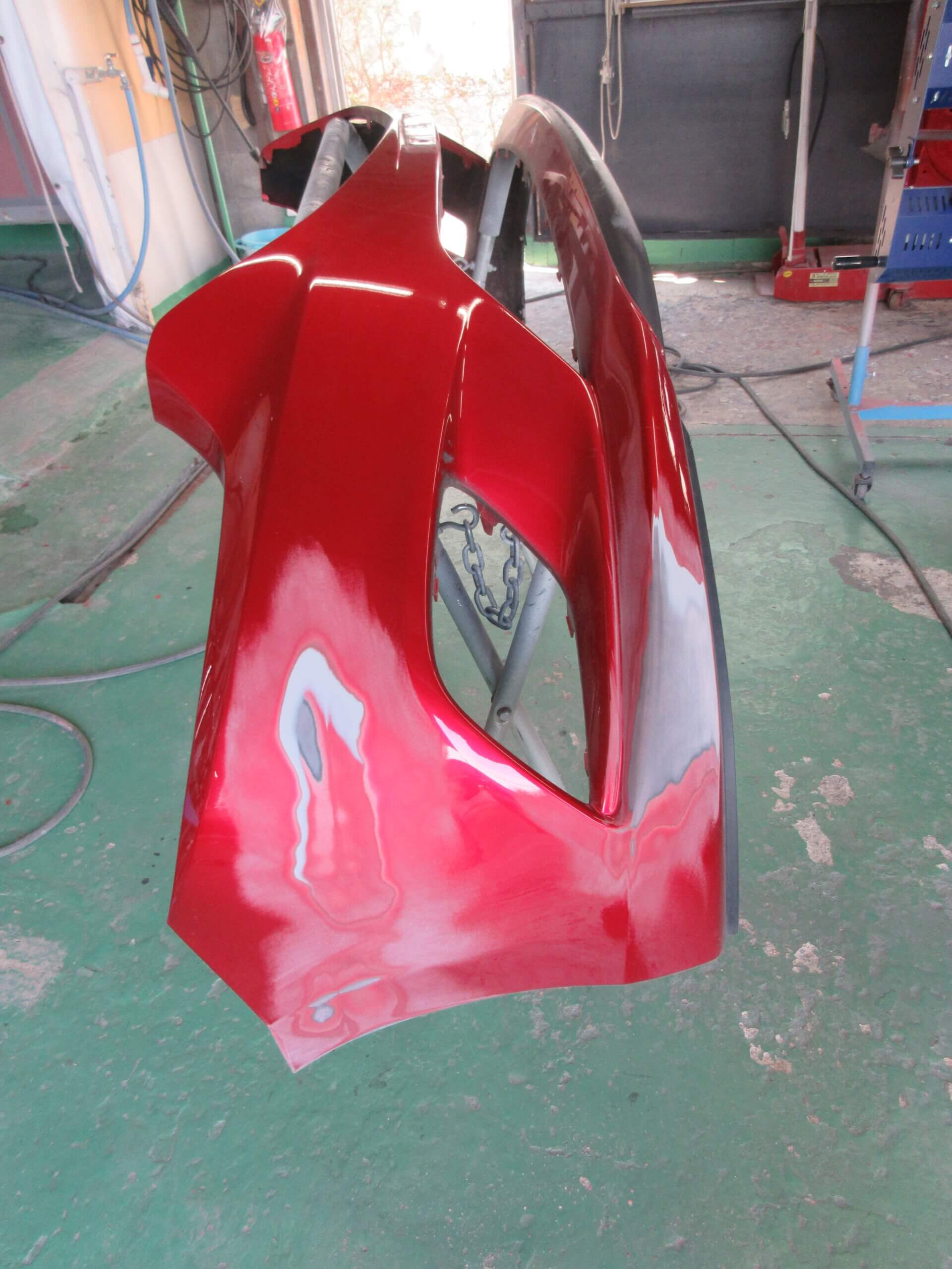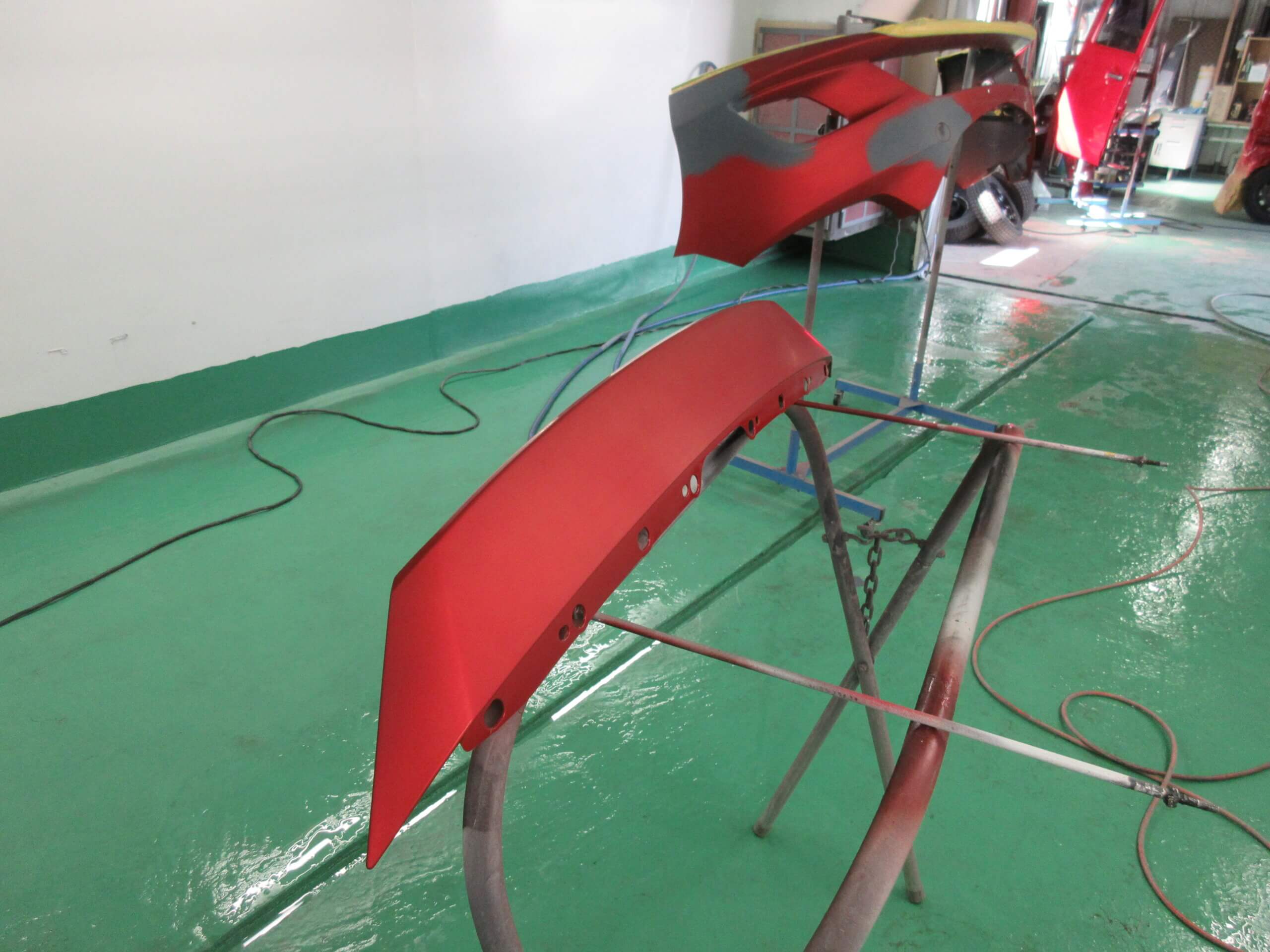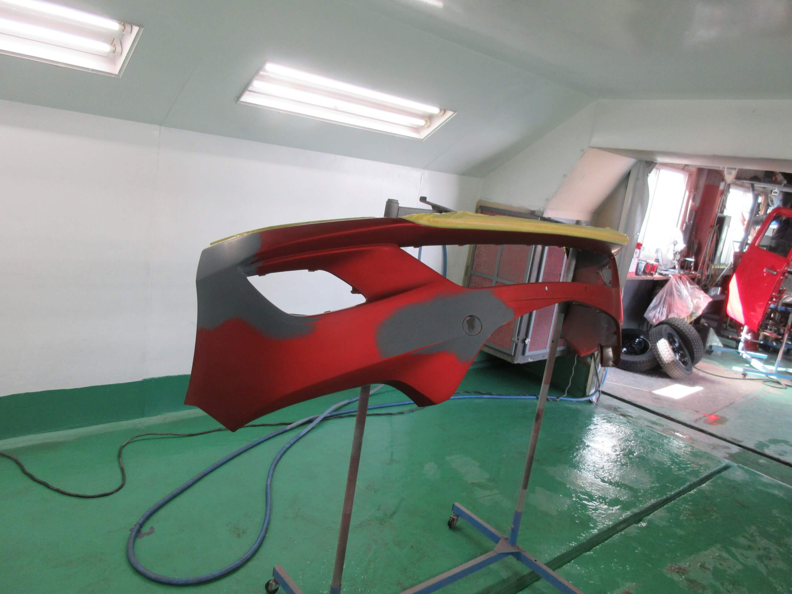 フロントバンパは、車の顔といえるパーツなのでしっかりと色合わせをしないといけません。