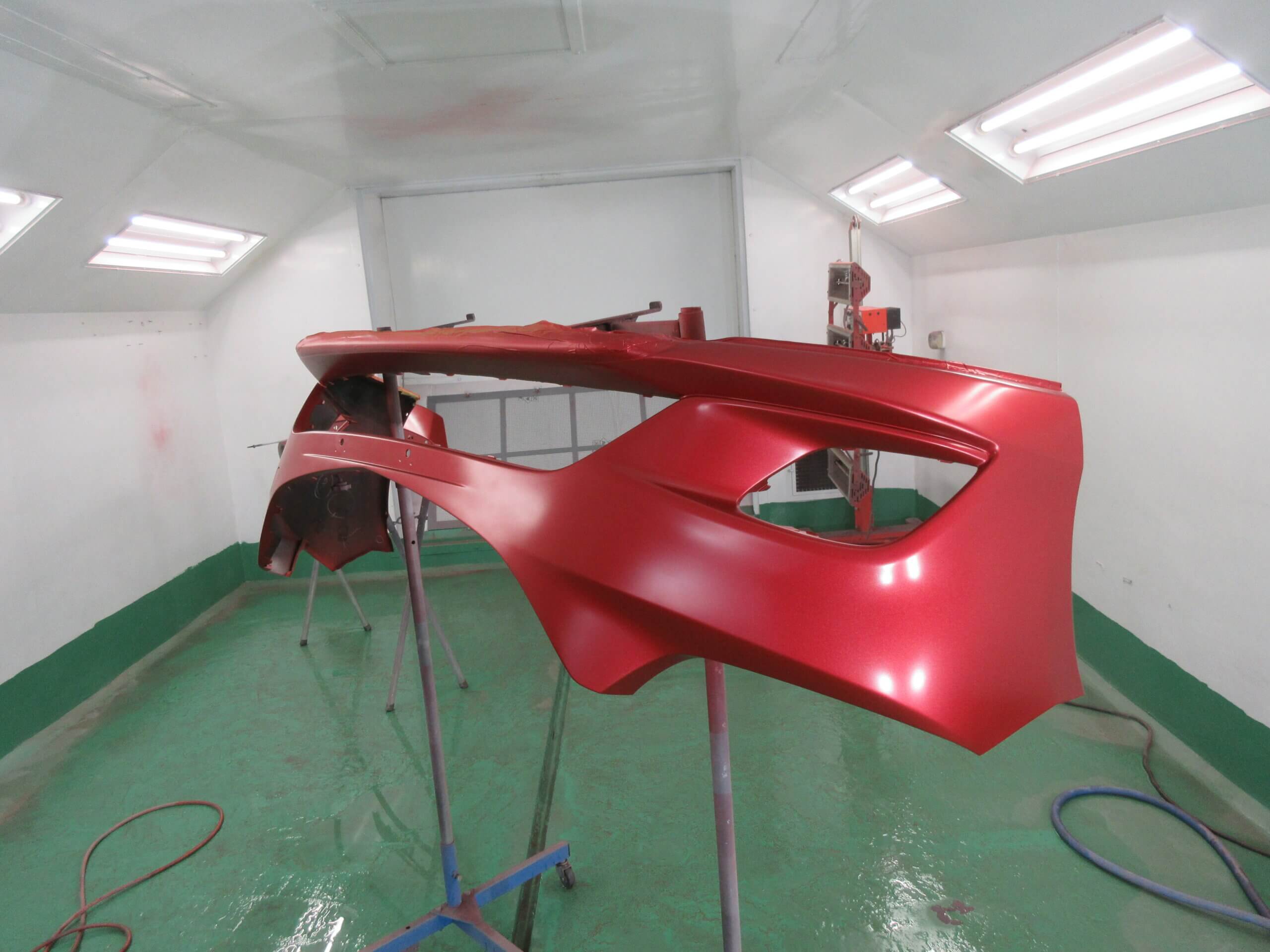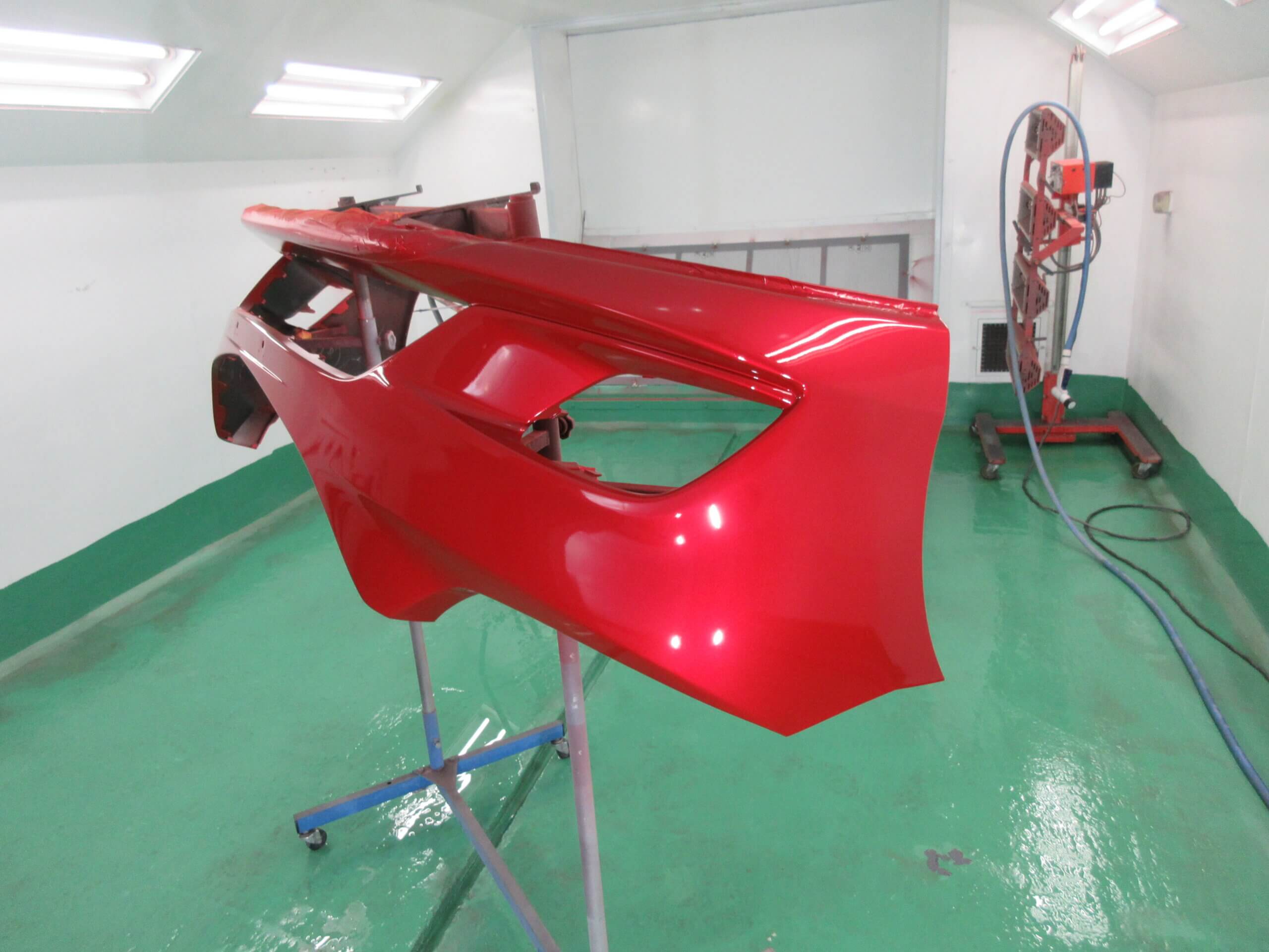 ボデーと色を合わせた塗料を計算通りに塗りこみと薄く重ねて塗装します。