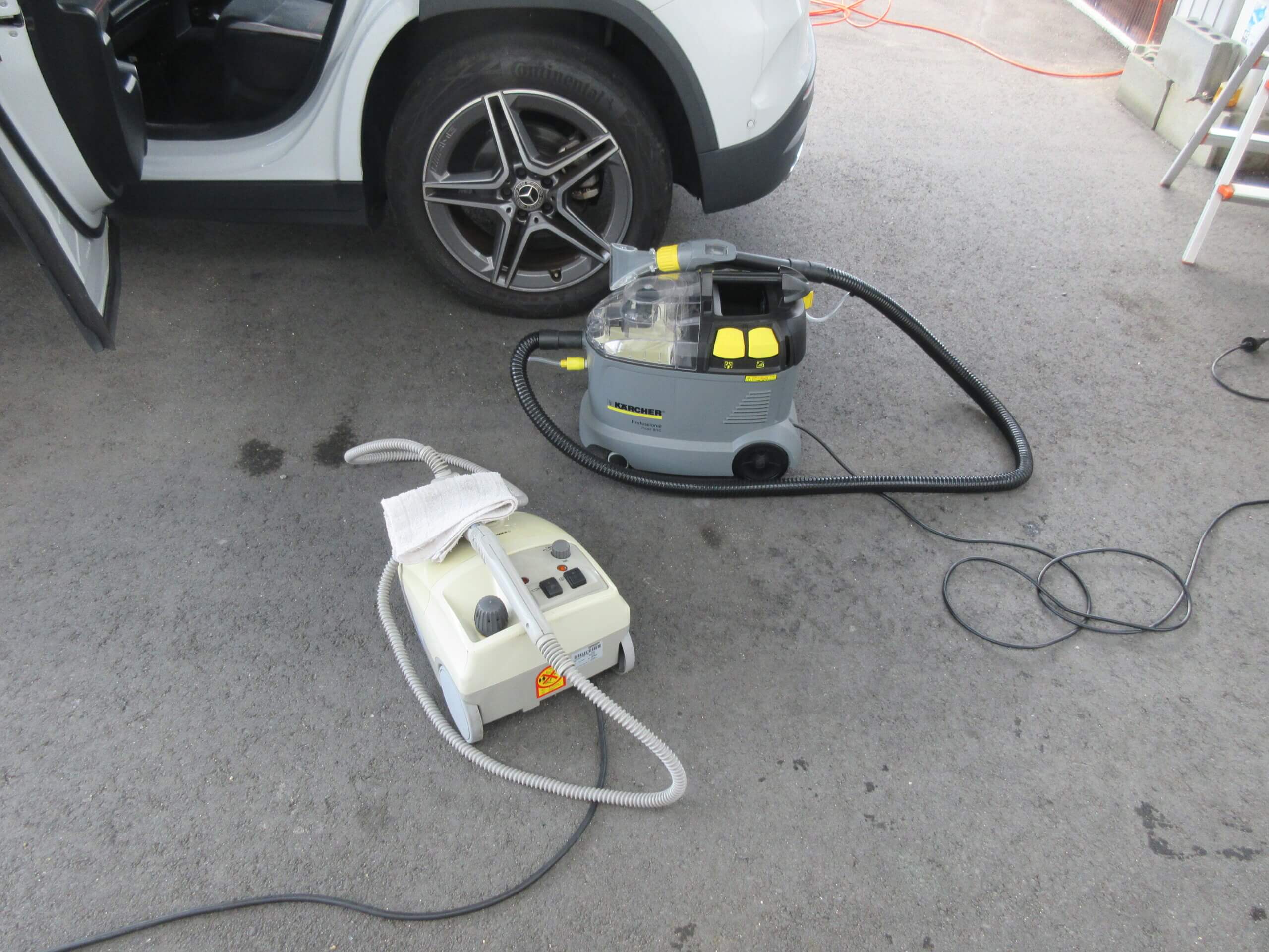 高温スチーム機で消毒も兼ねて洗浄