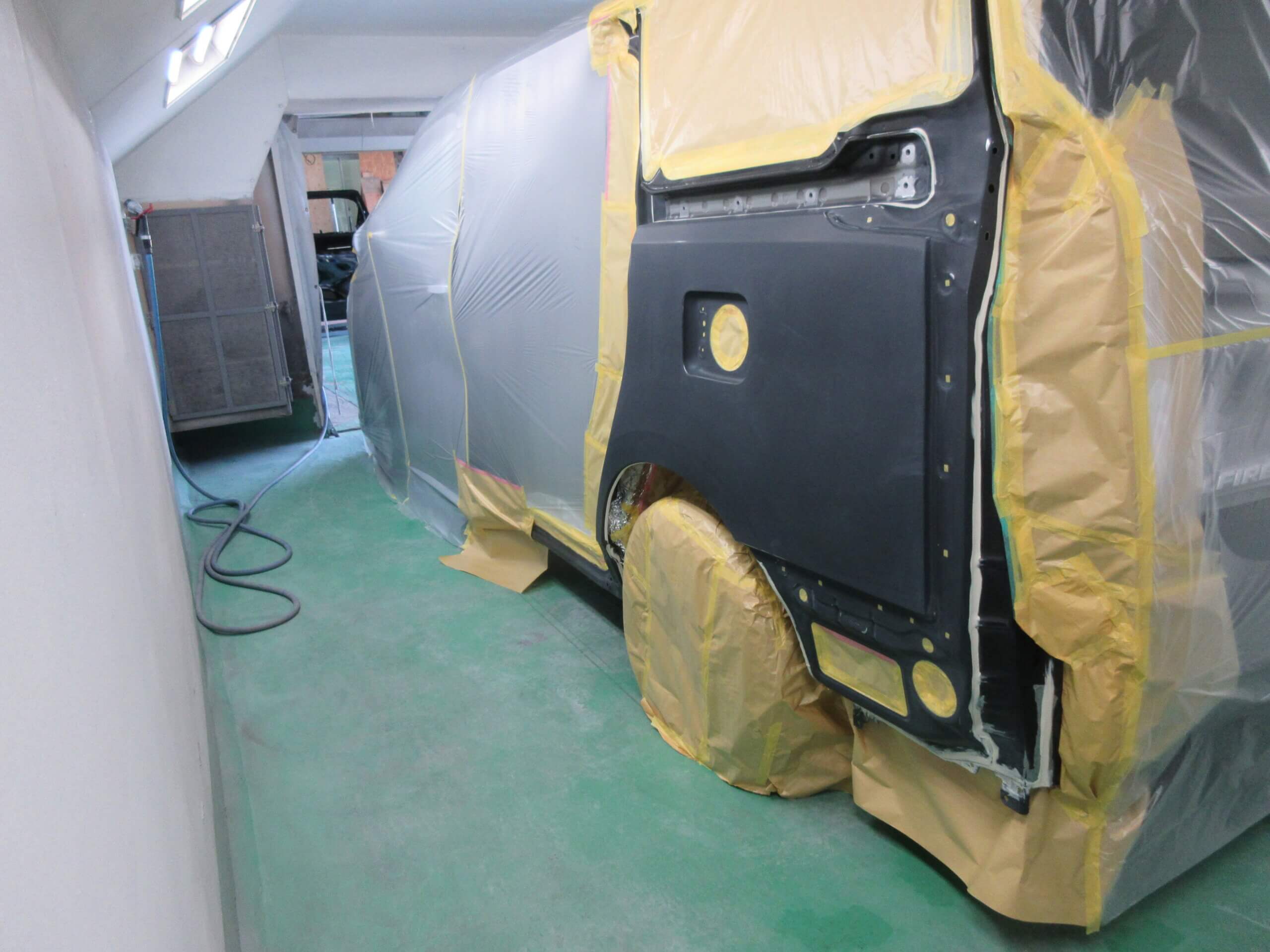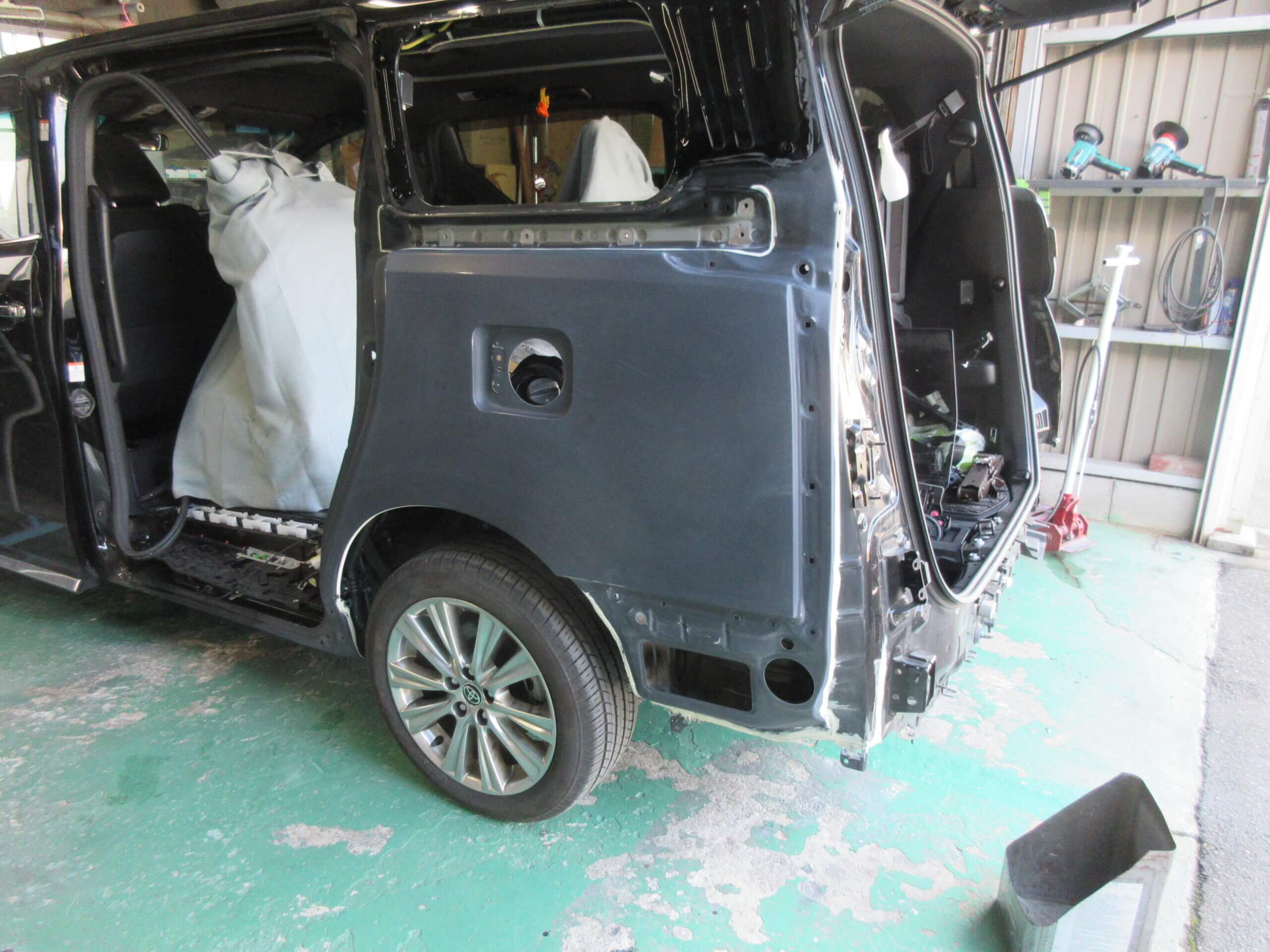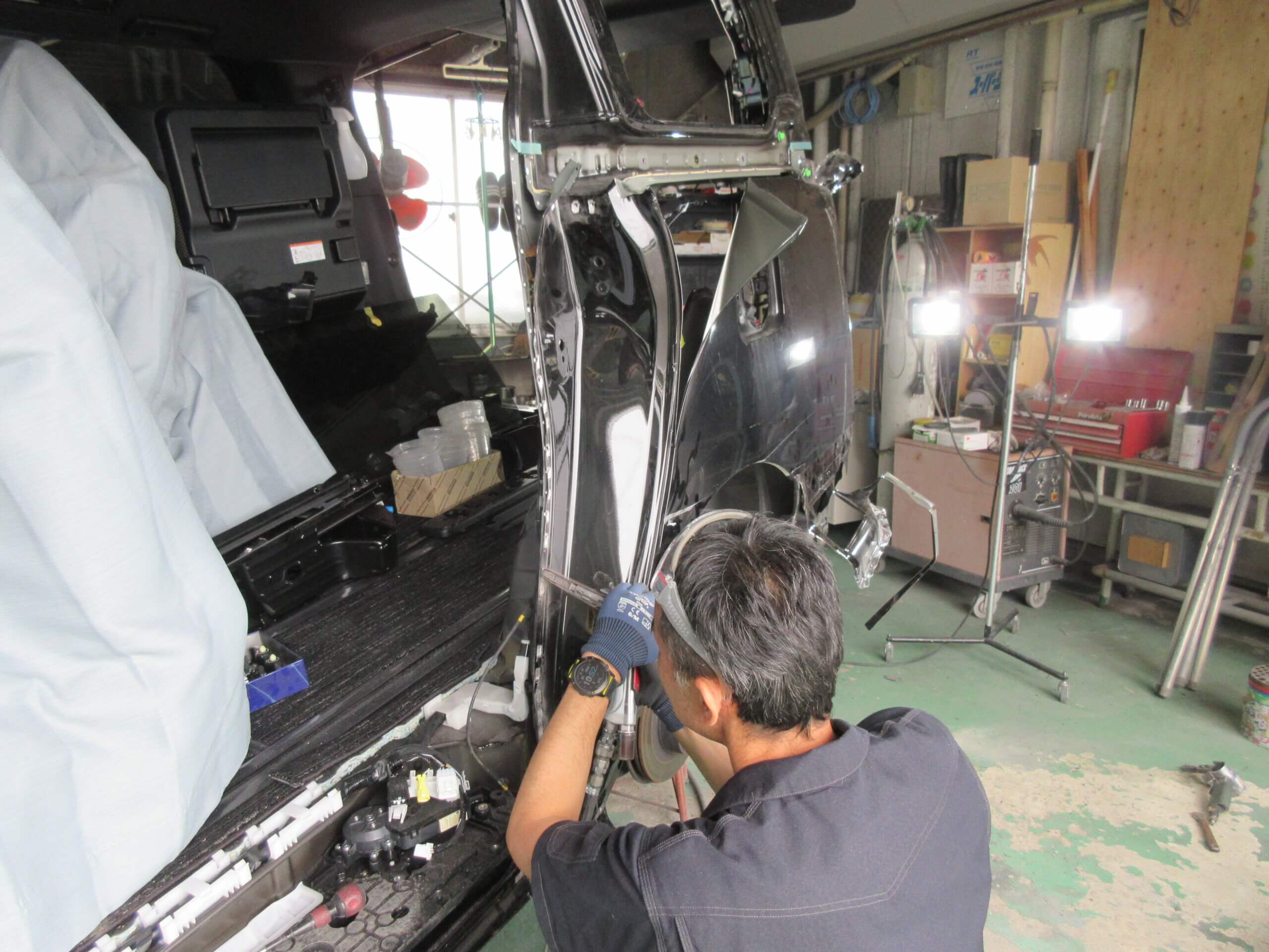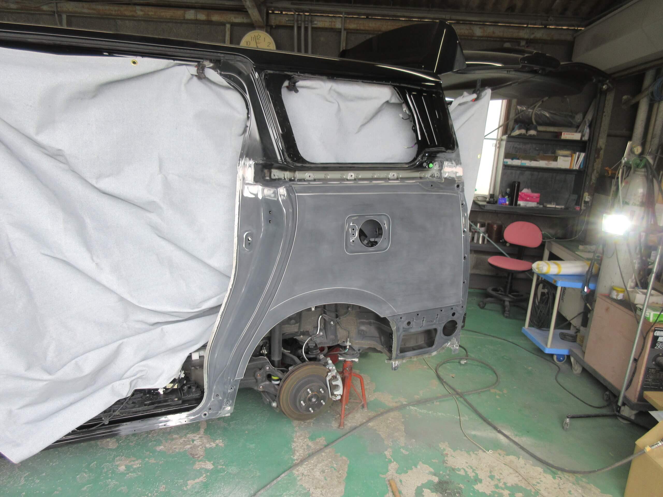 クォータパネルをカットするために座席と内張り等の室内の部品を外します。