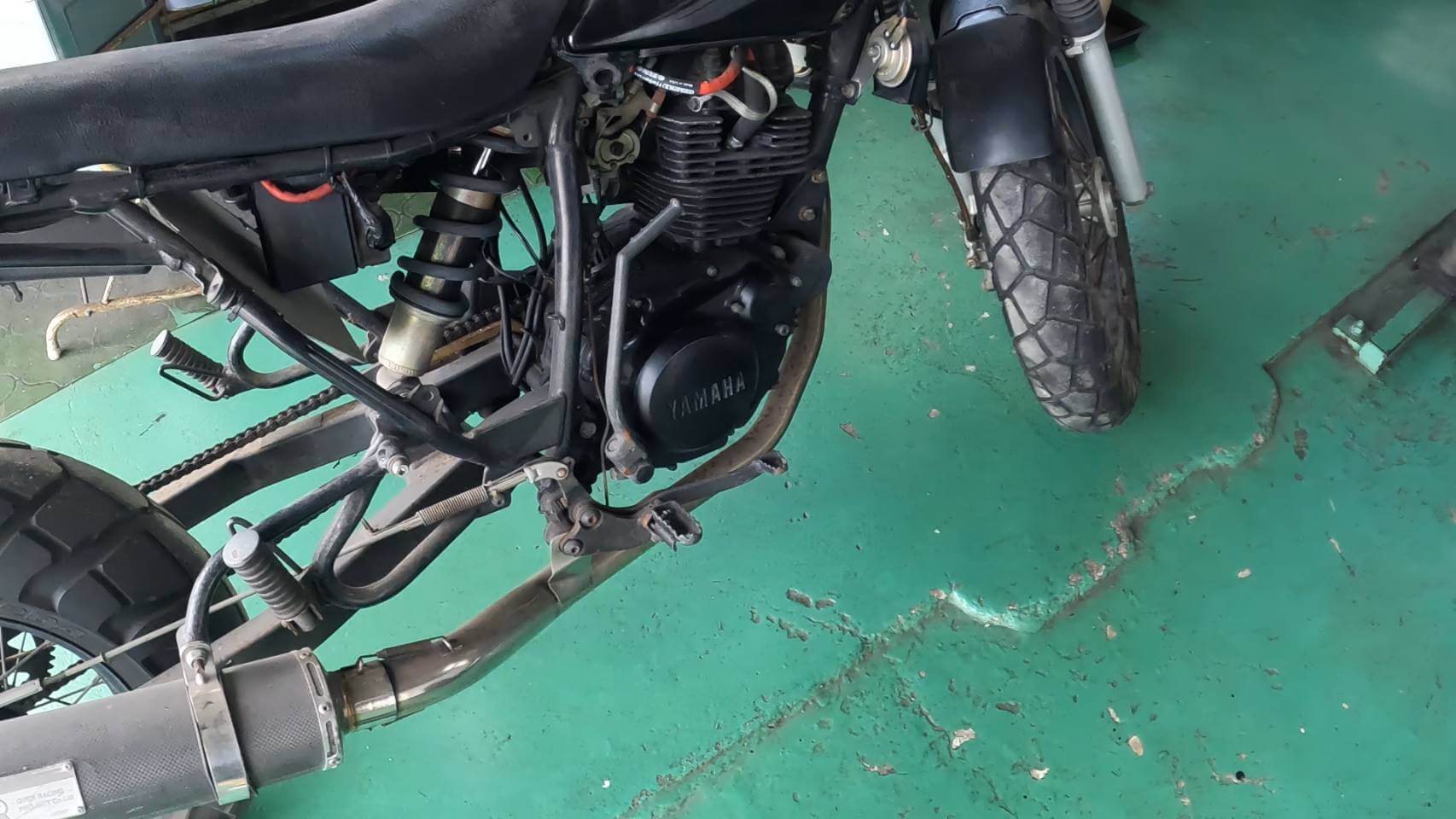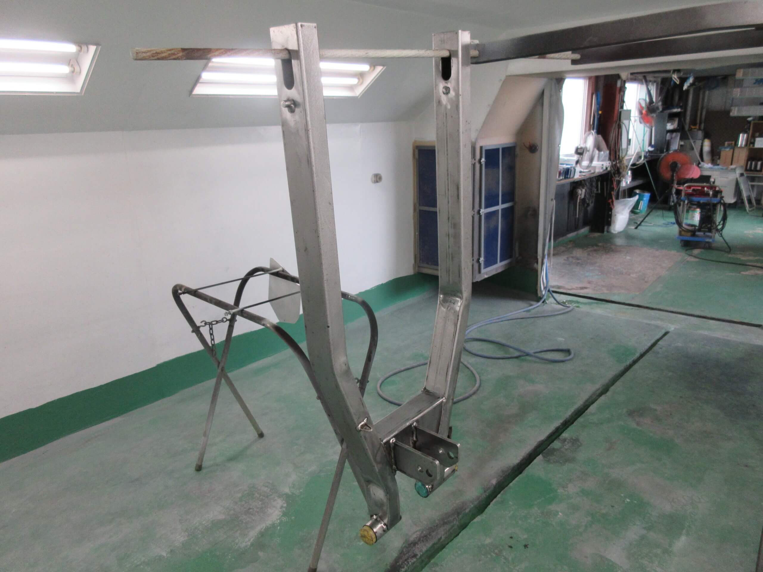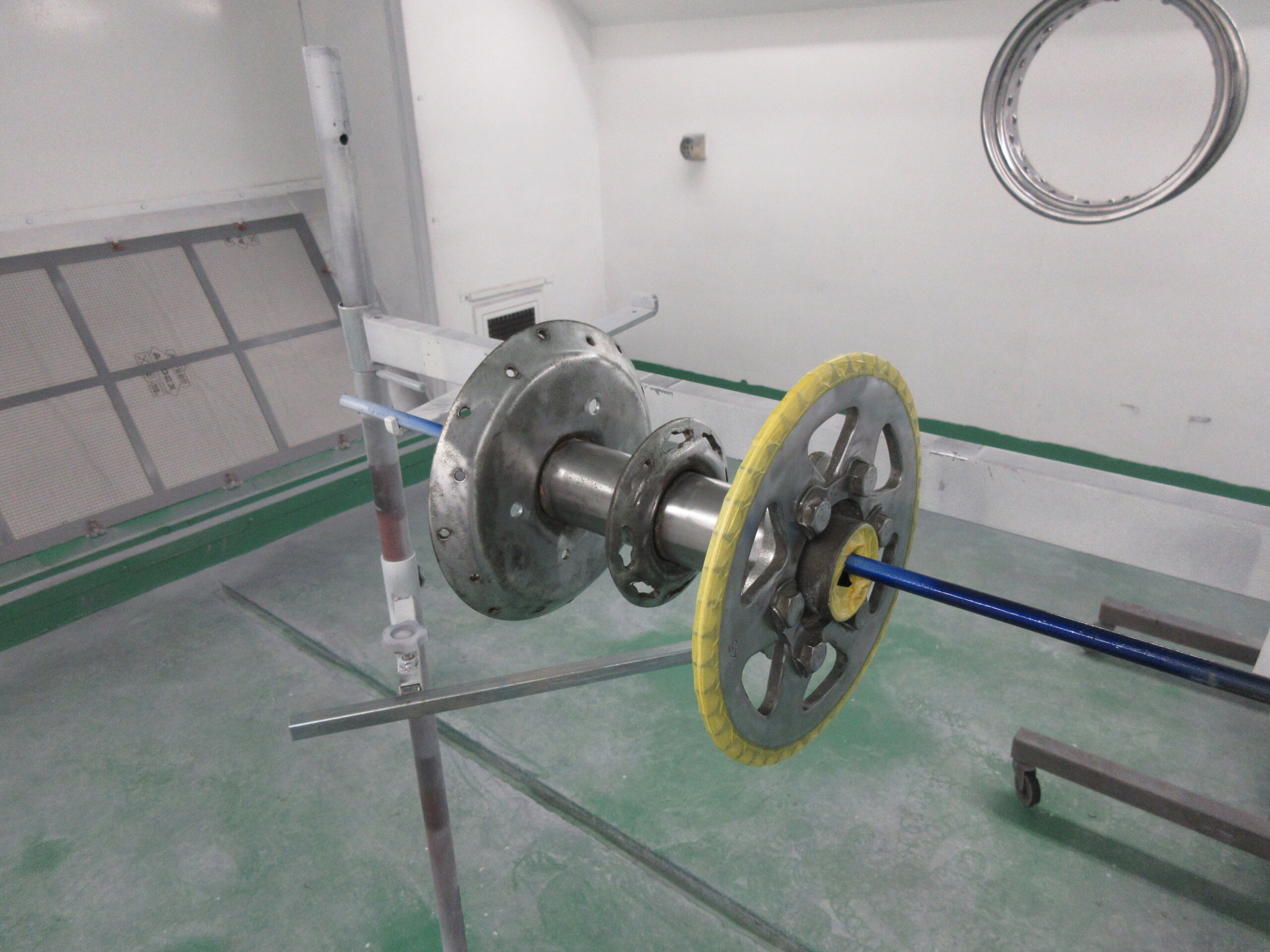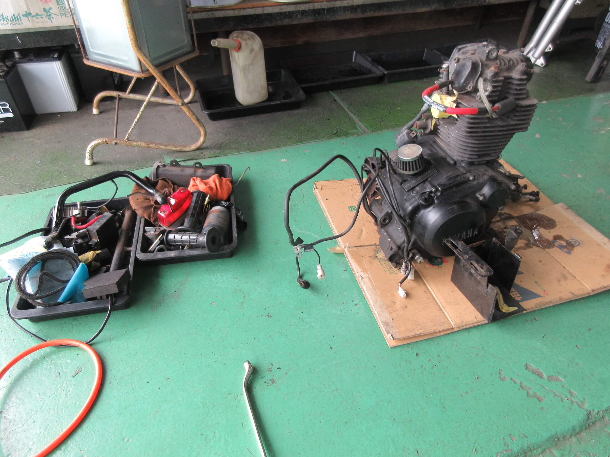 今回は、エンジンやタイヤを外してフレーム単体にして作業します。