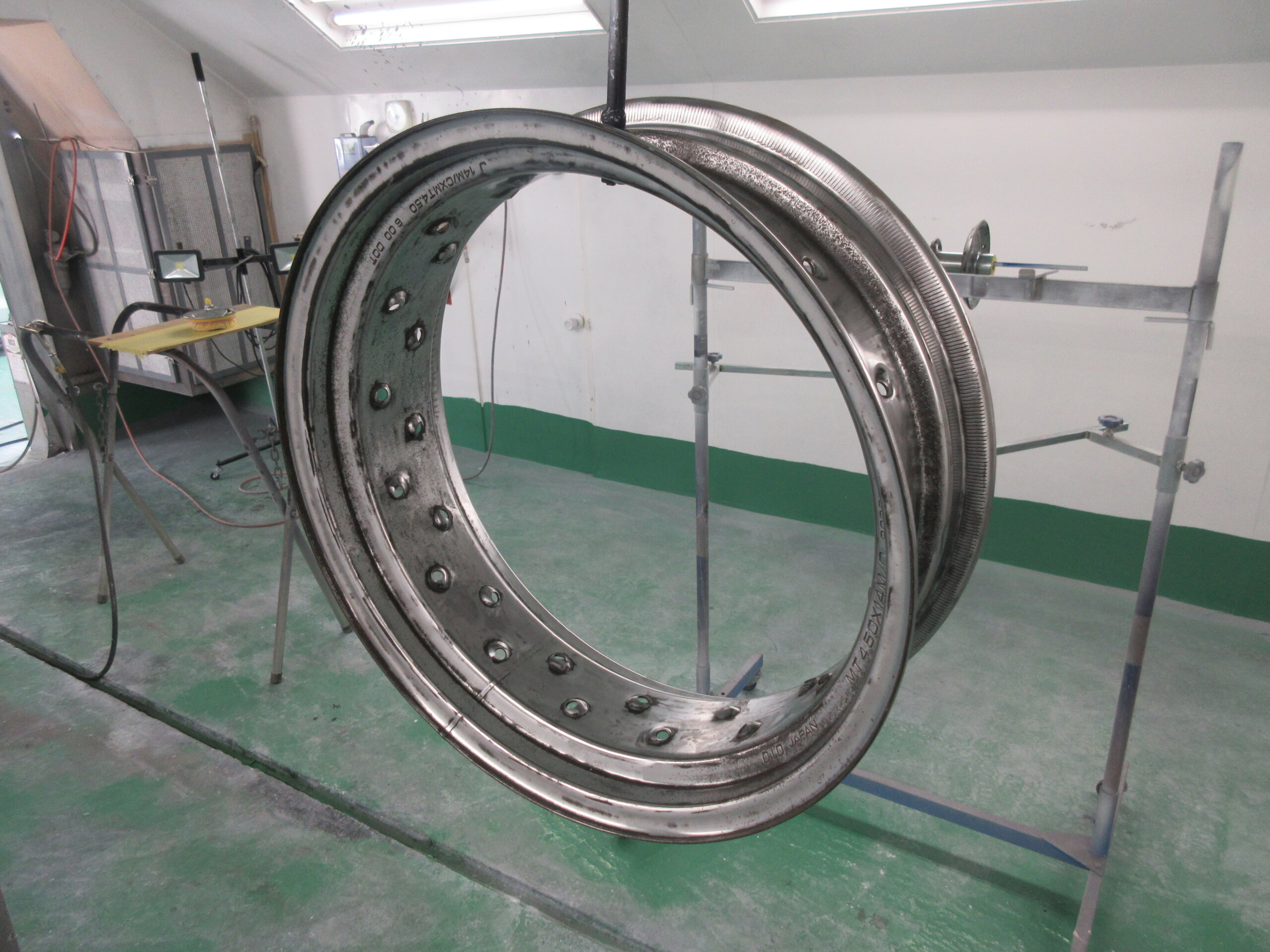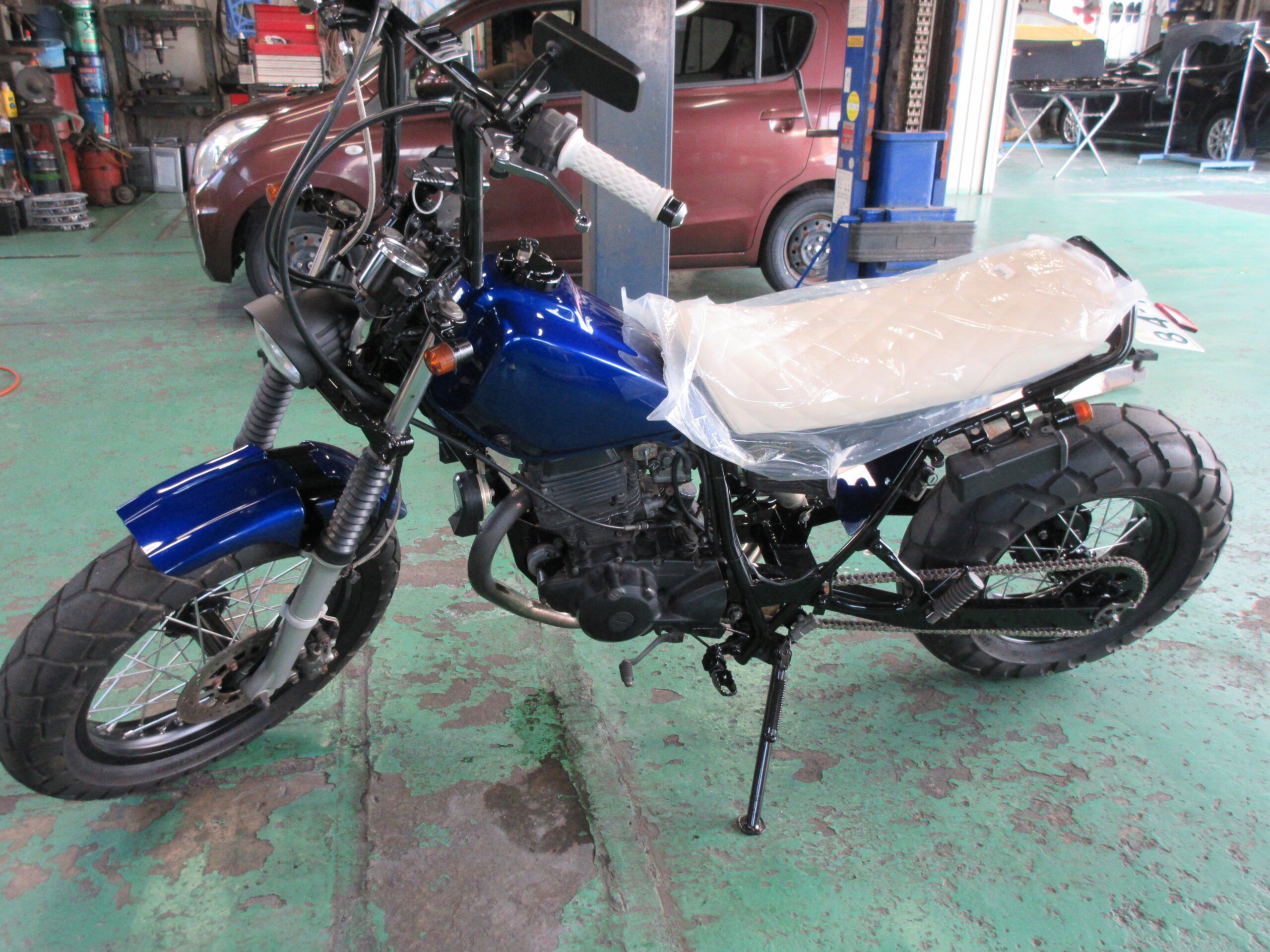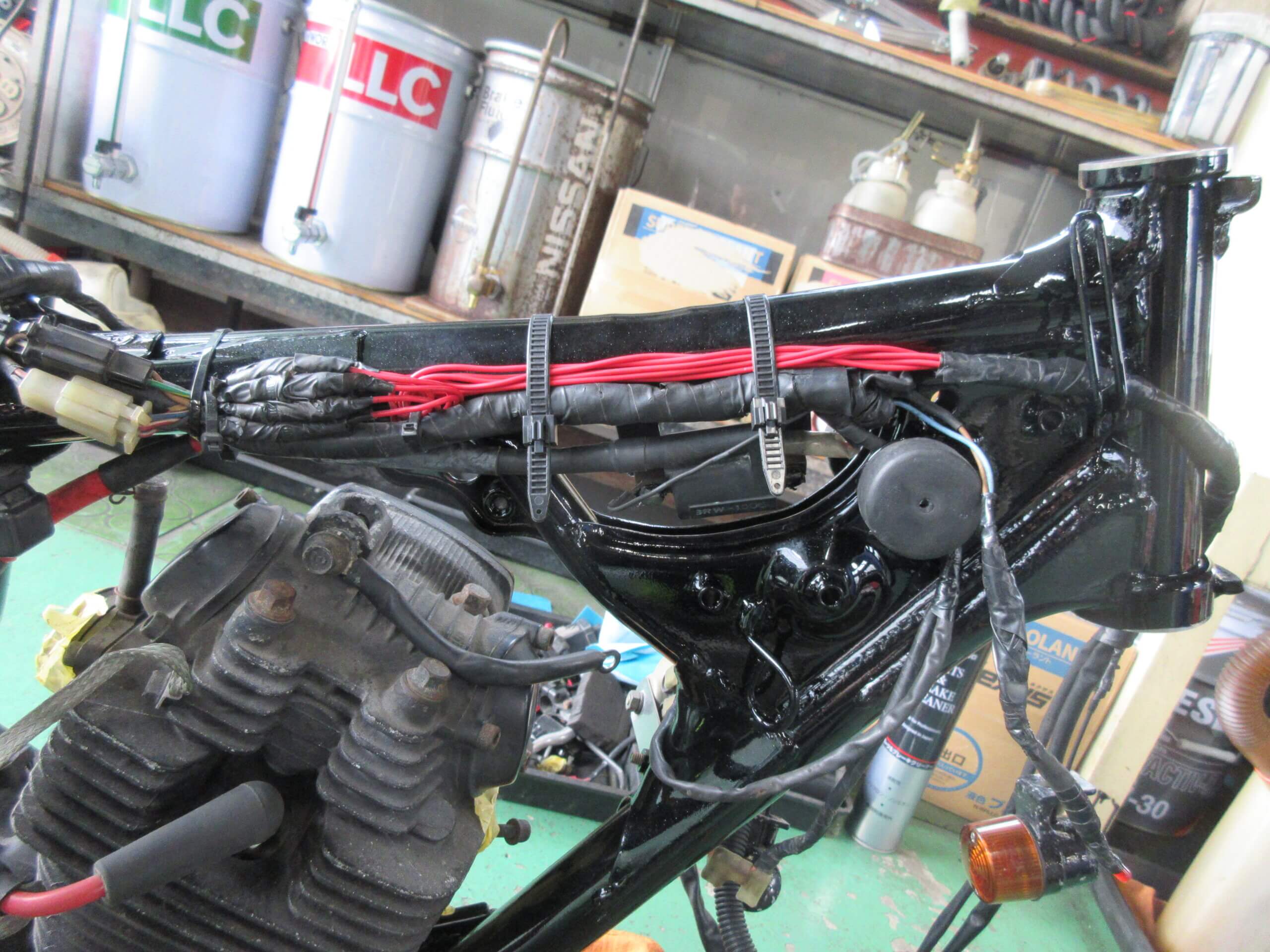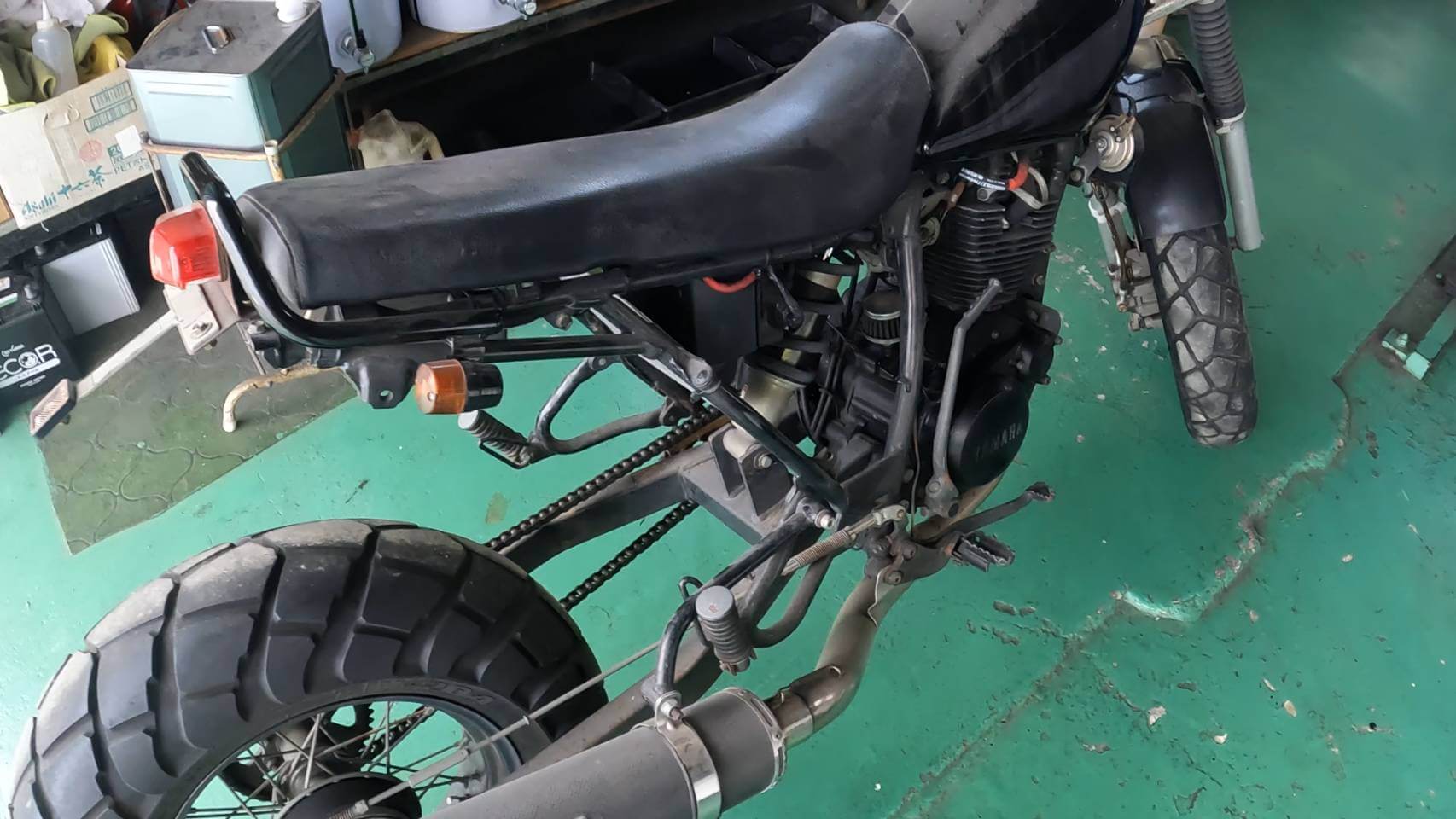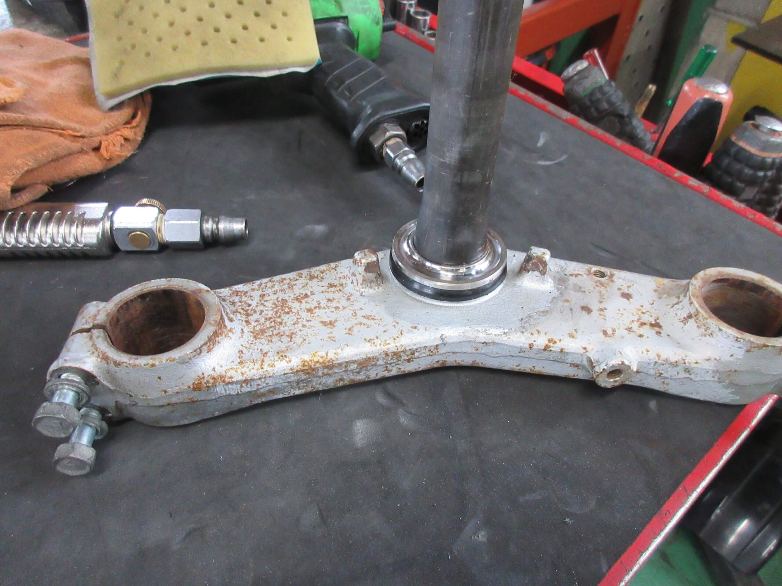 今回は、エンジンやタイヤを外してフレーム単体にして作業します。