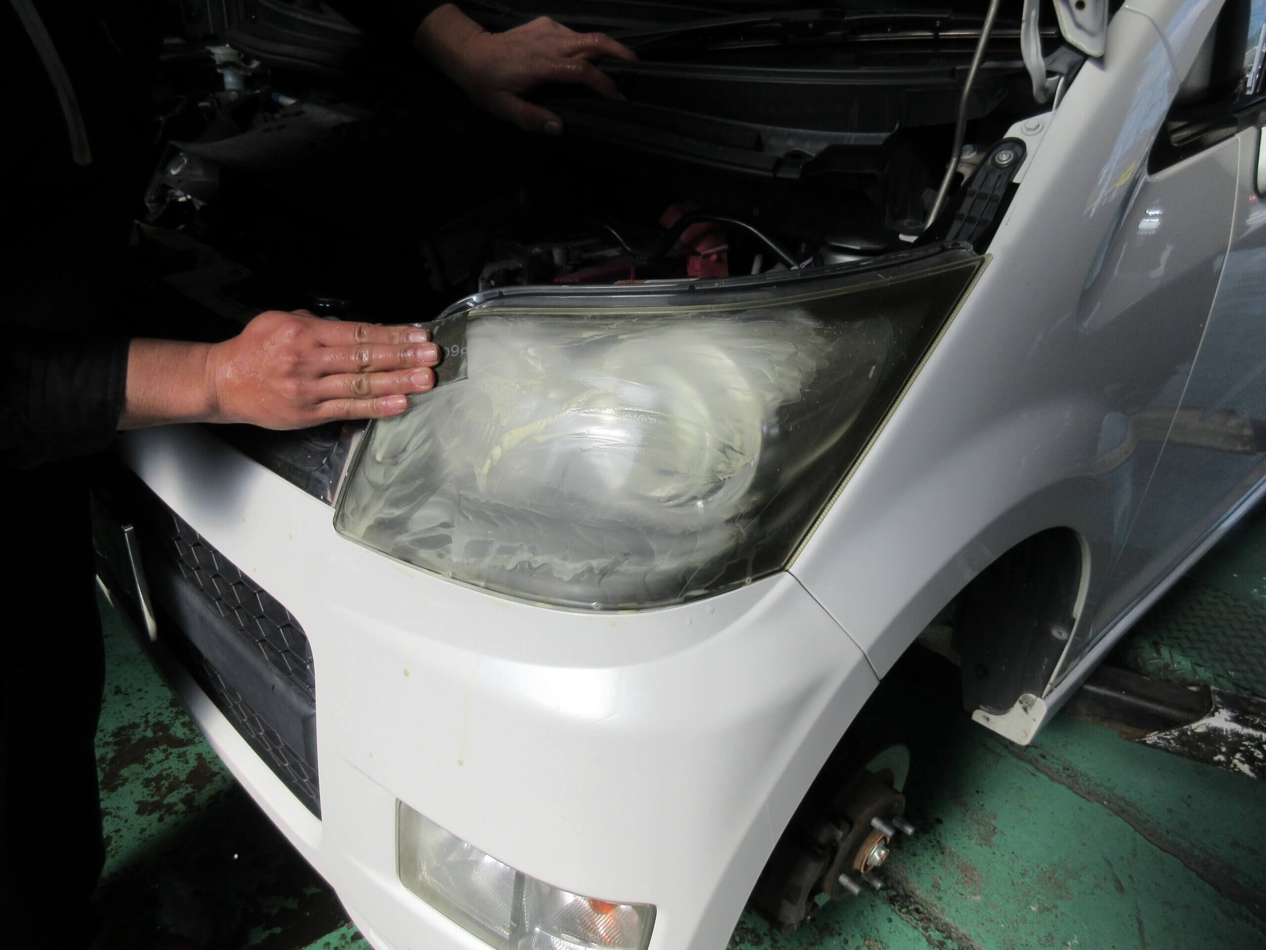 ヘッドライトが経年劣化して白く濁っているでいる状態です。