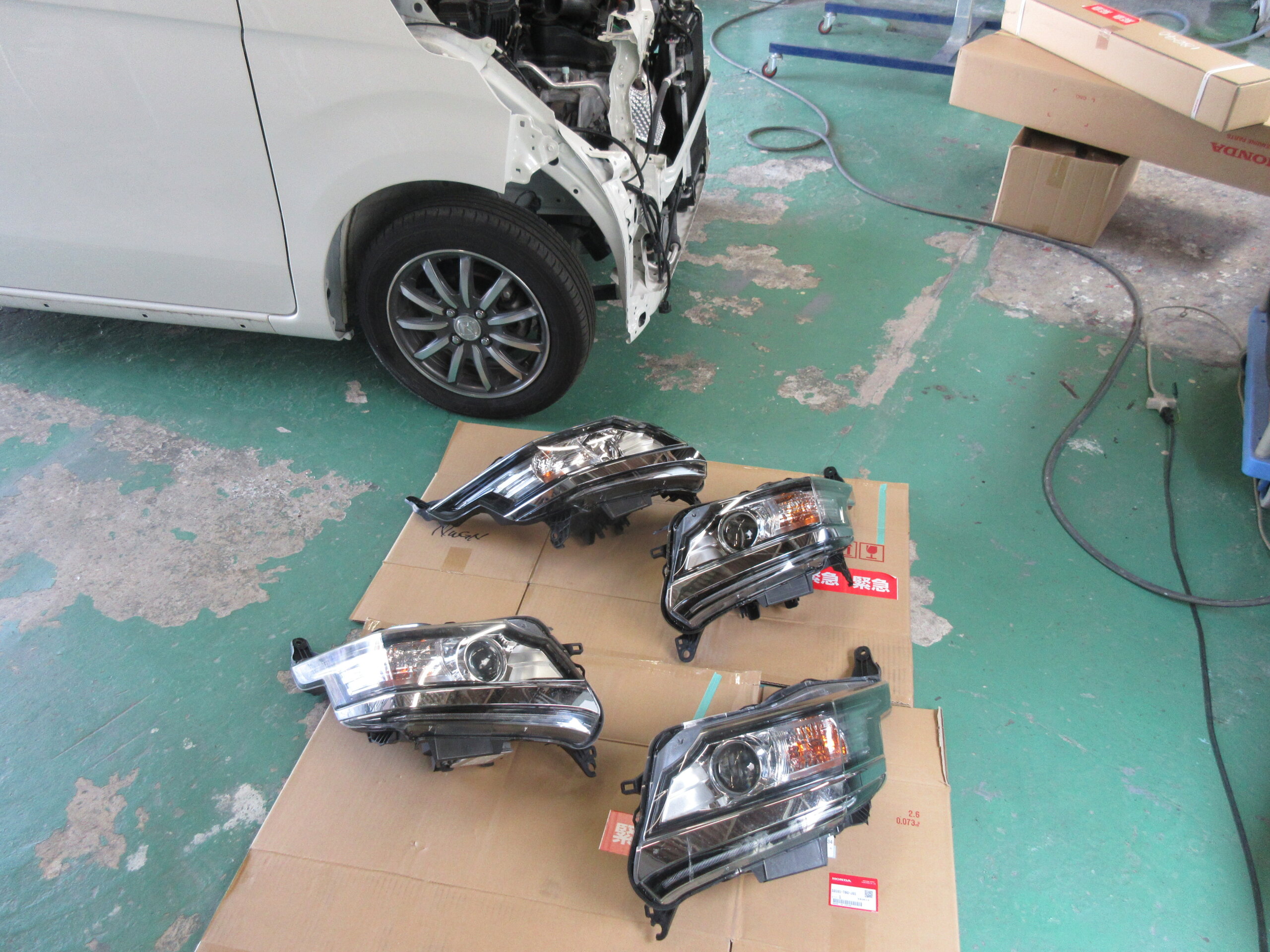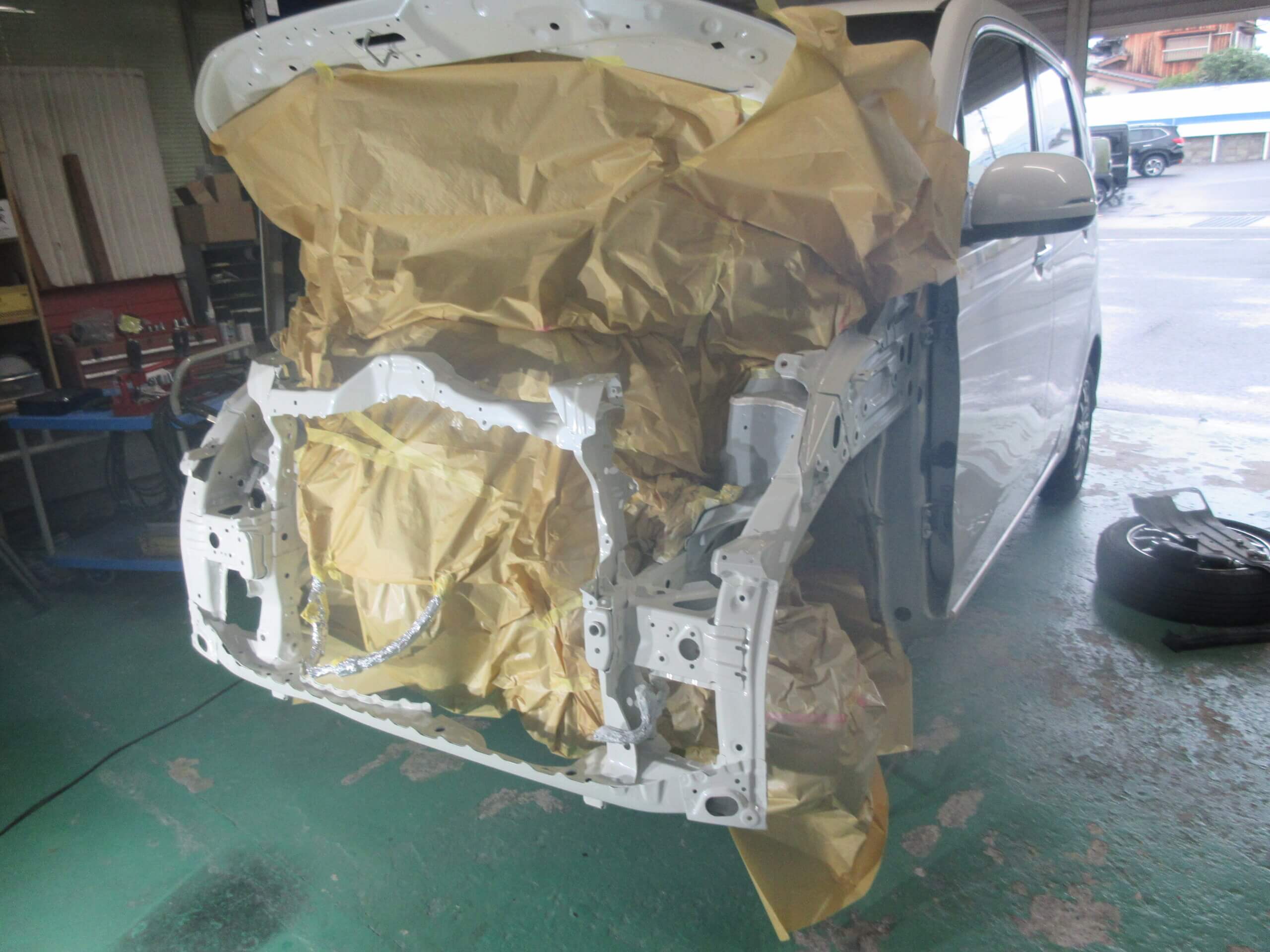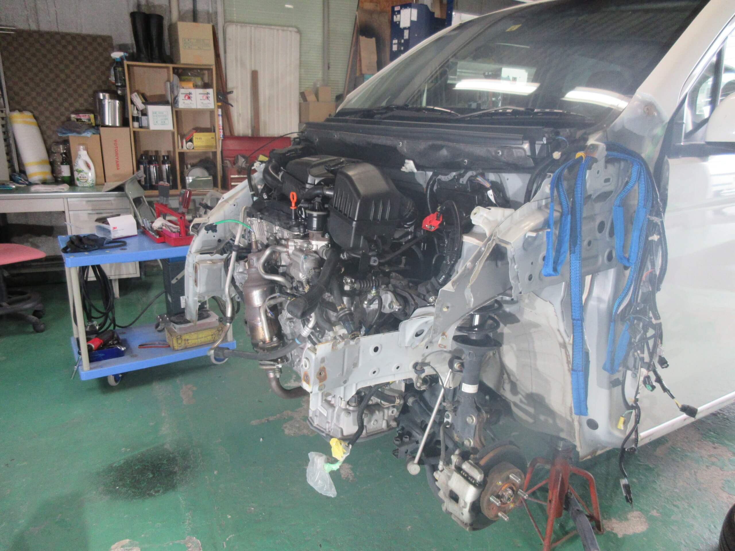 外板関係は、ボンネットフード・左右フロントフェンダパネル・ヘッドライト・フロントバンパ関係交換。