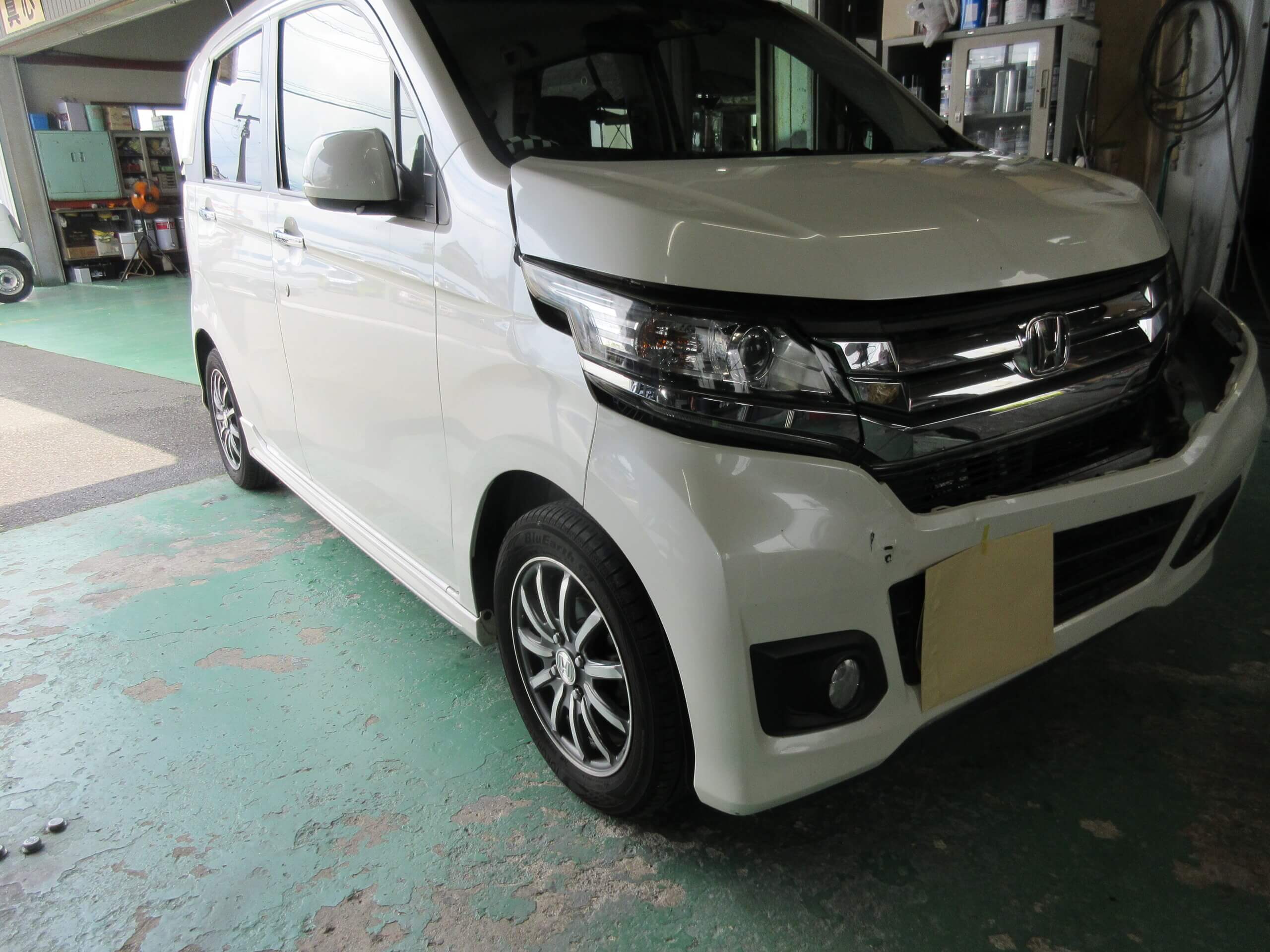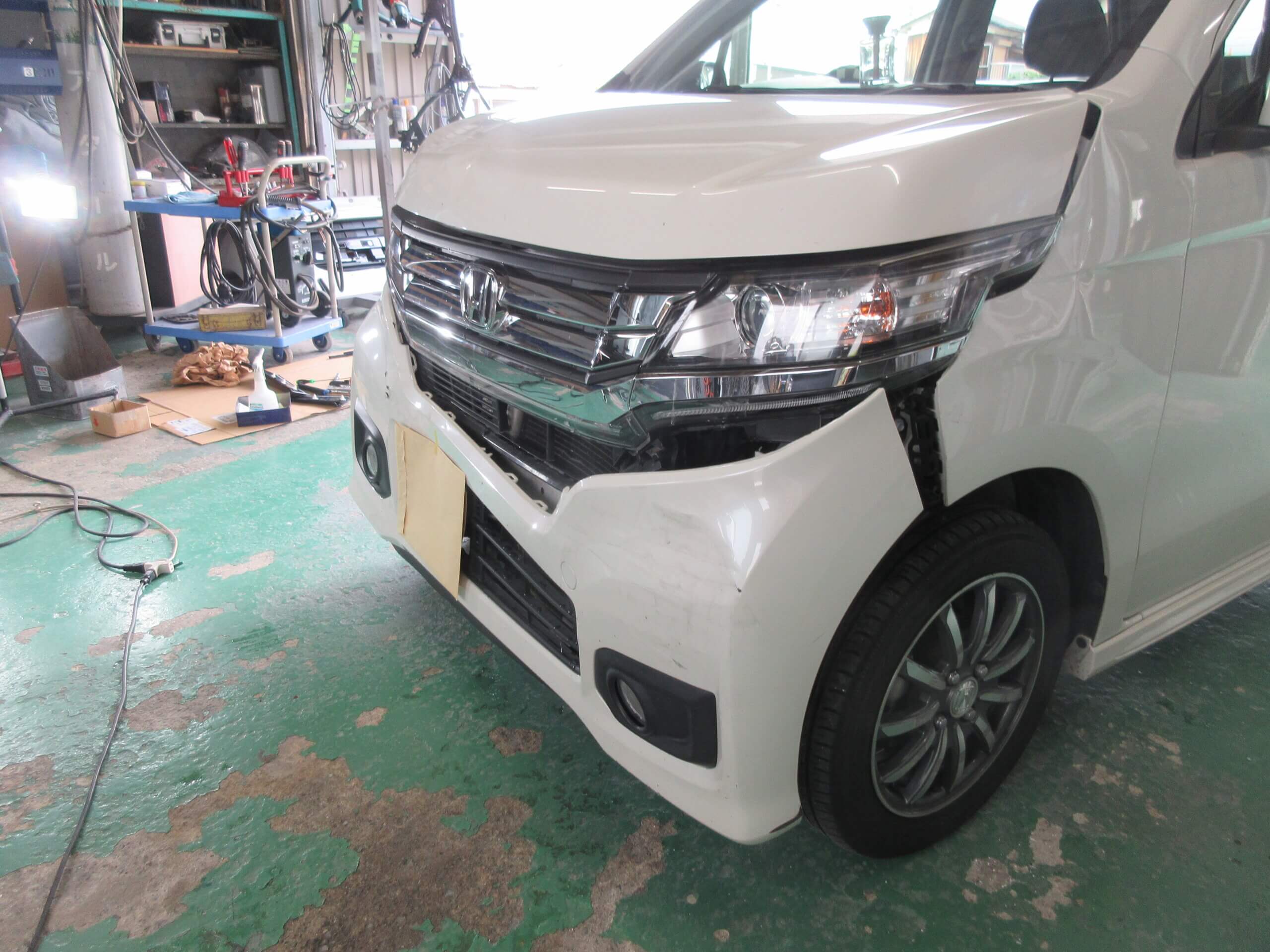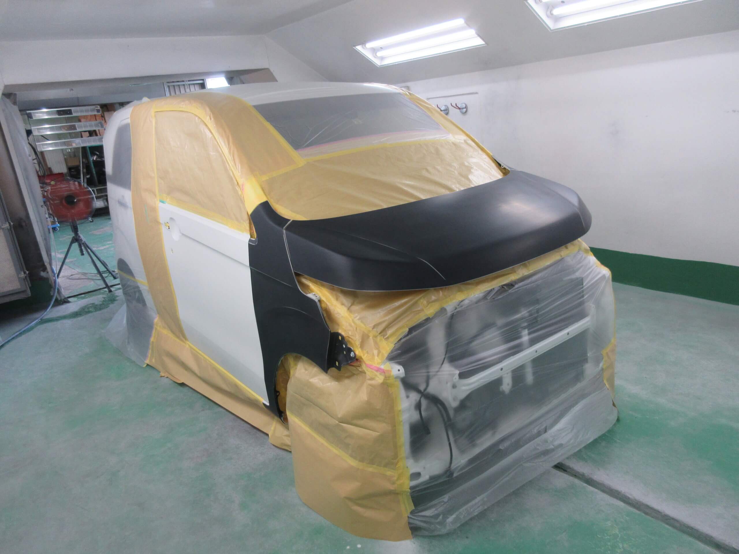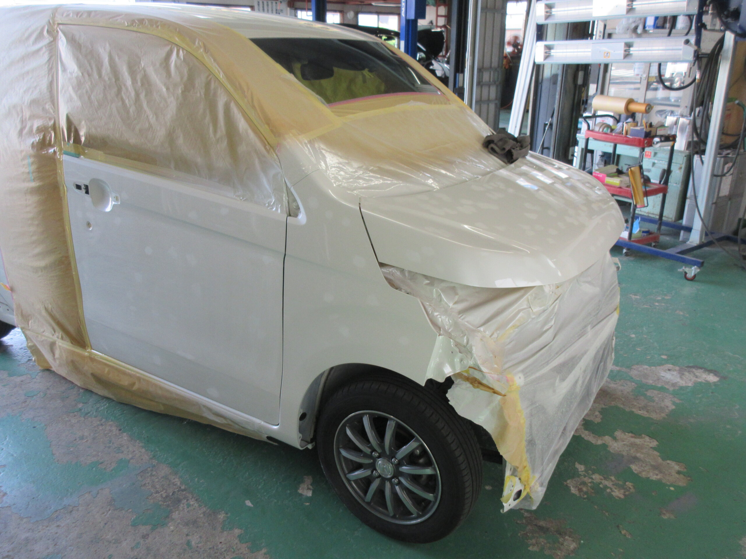 外板関係は、ボンネットフード・左右フロントフェンダパネル・ヘッドライト・フロントバンパ関係交換。