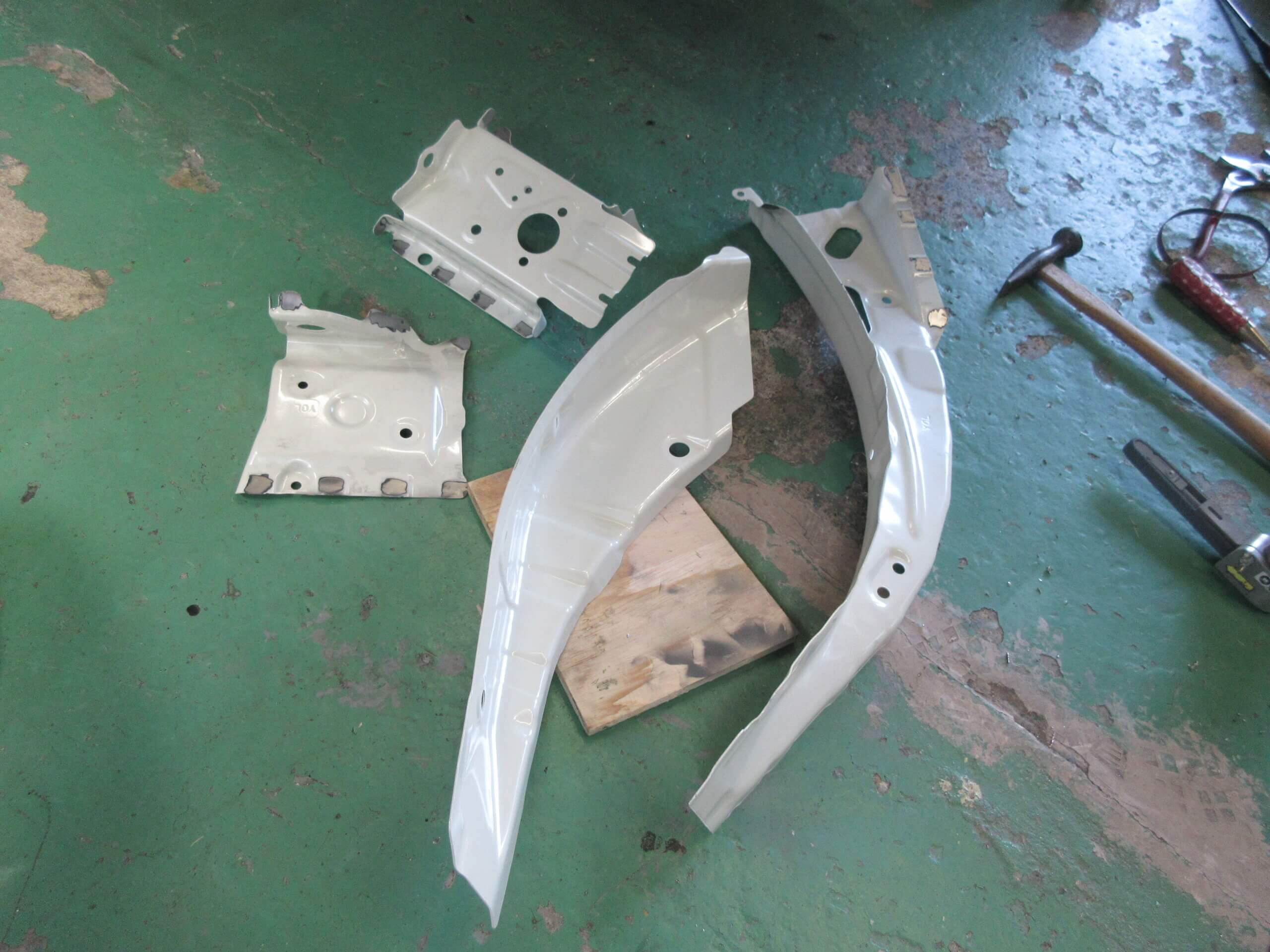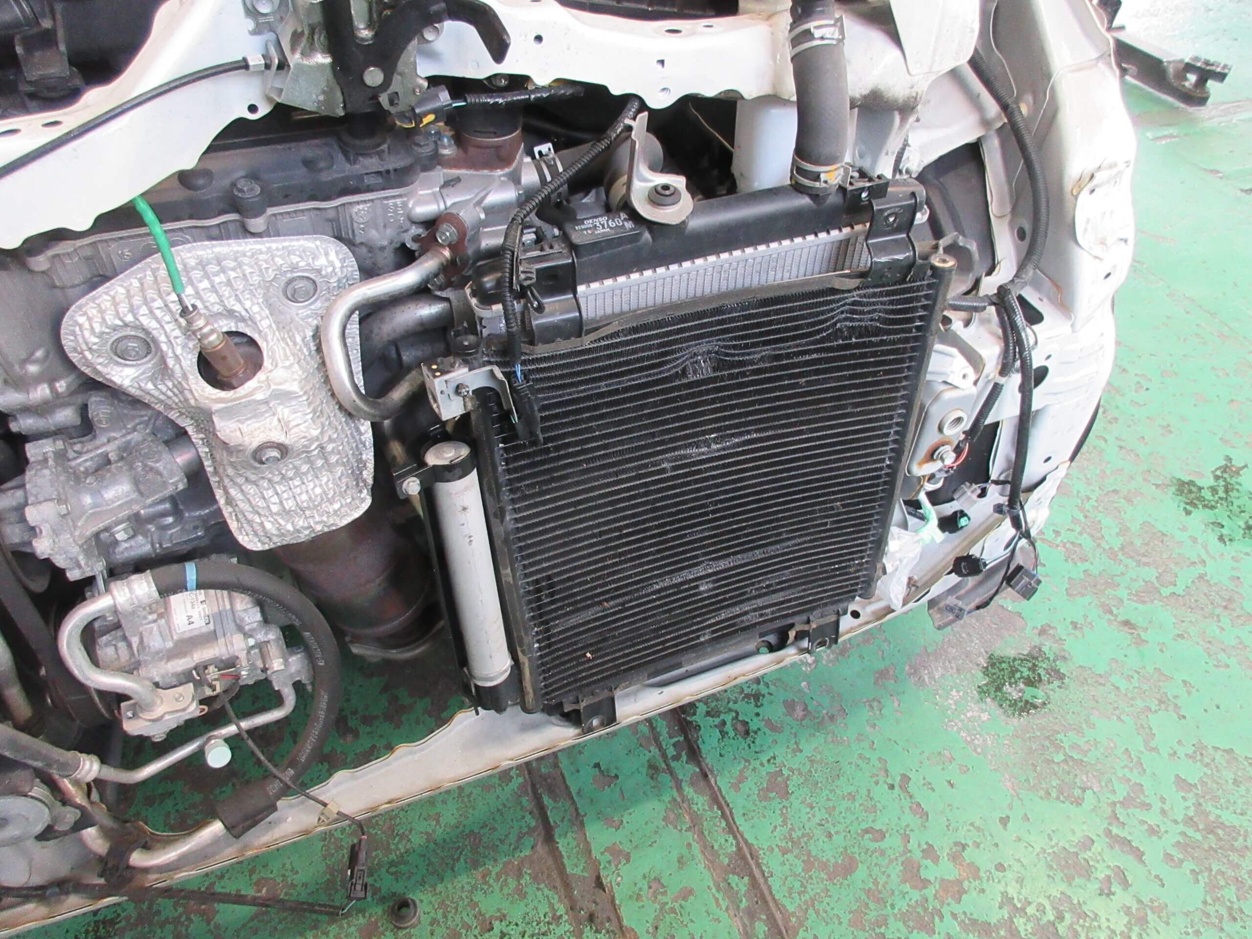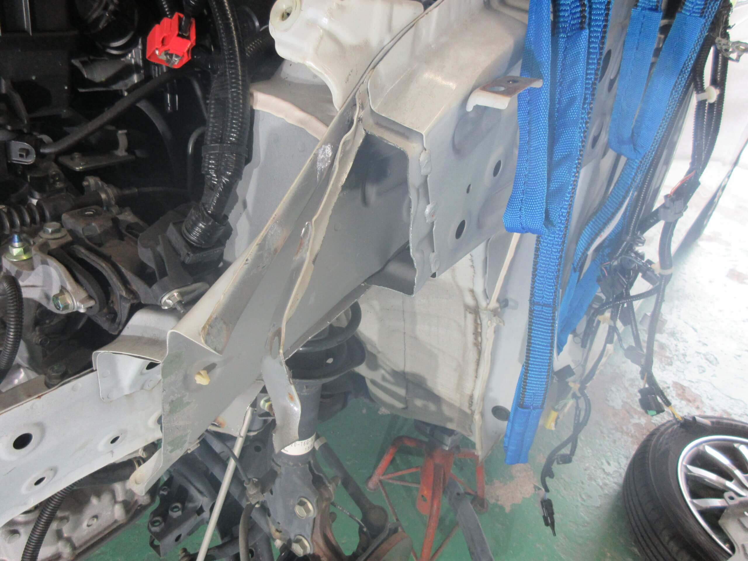 内板関係は、全ラジエータサポート・ラジエータ・エアコンコンデンサ等の交換とフェンダエプロン関係の修理となります。