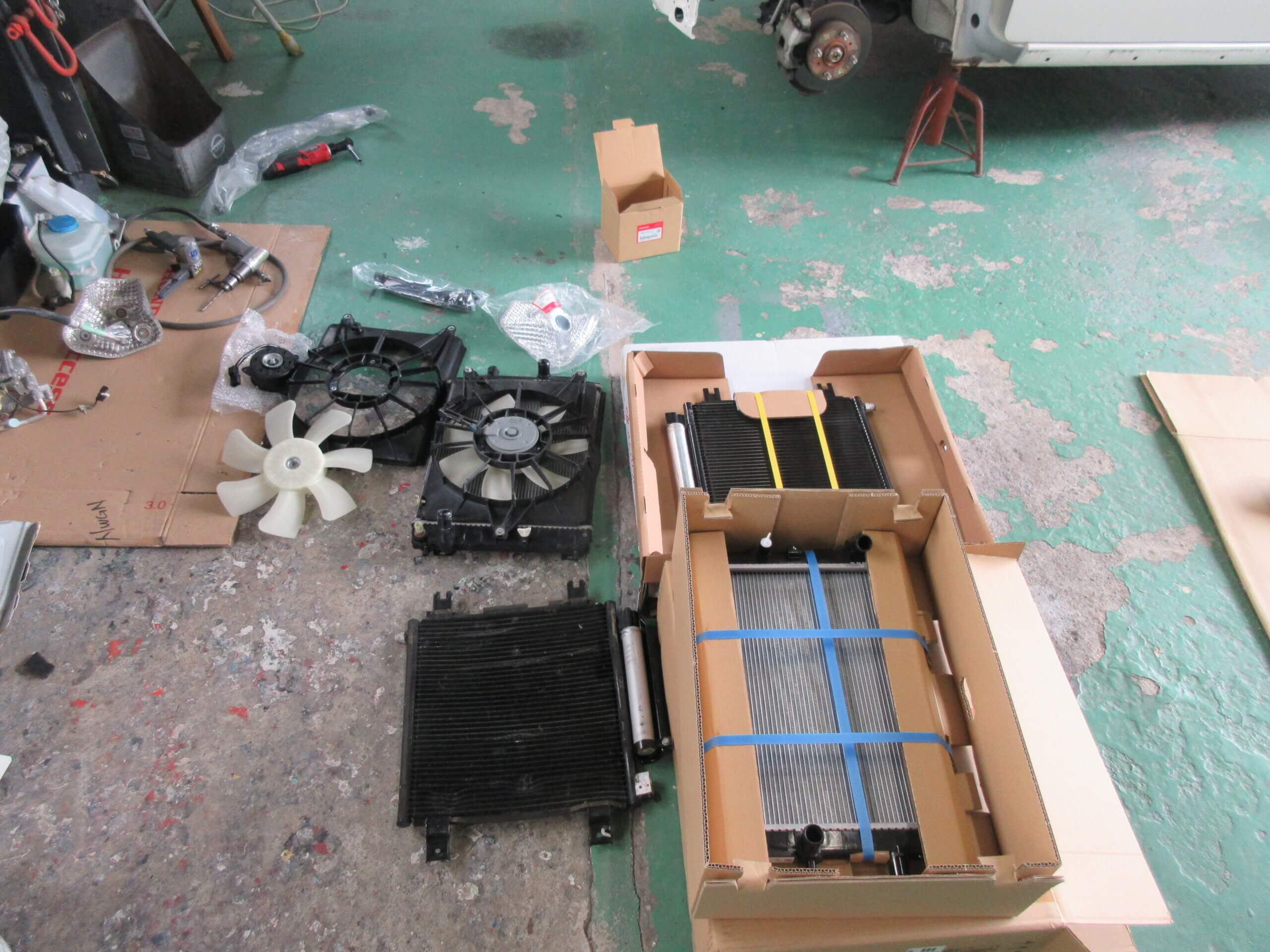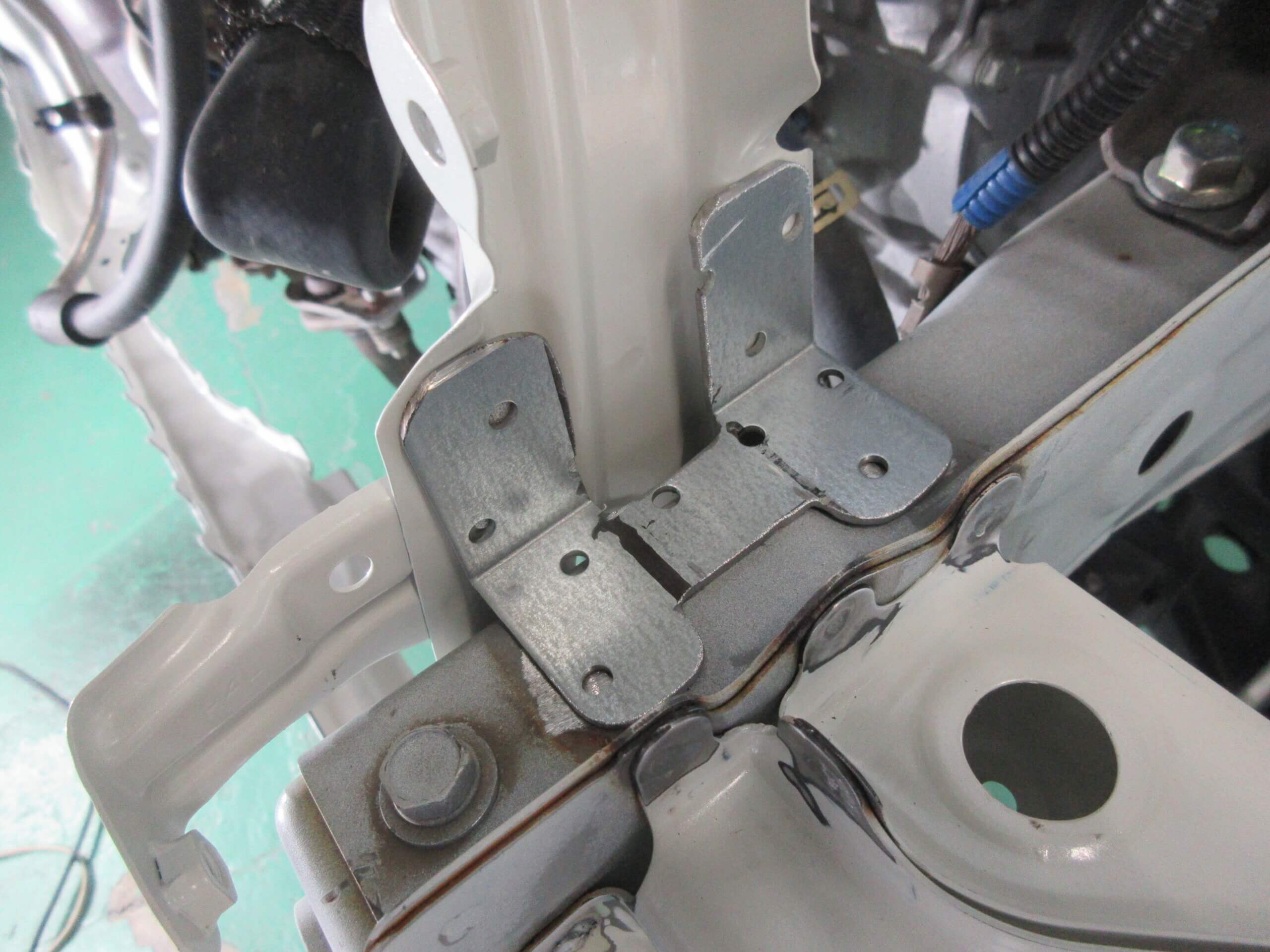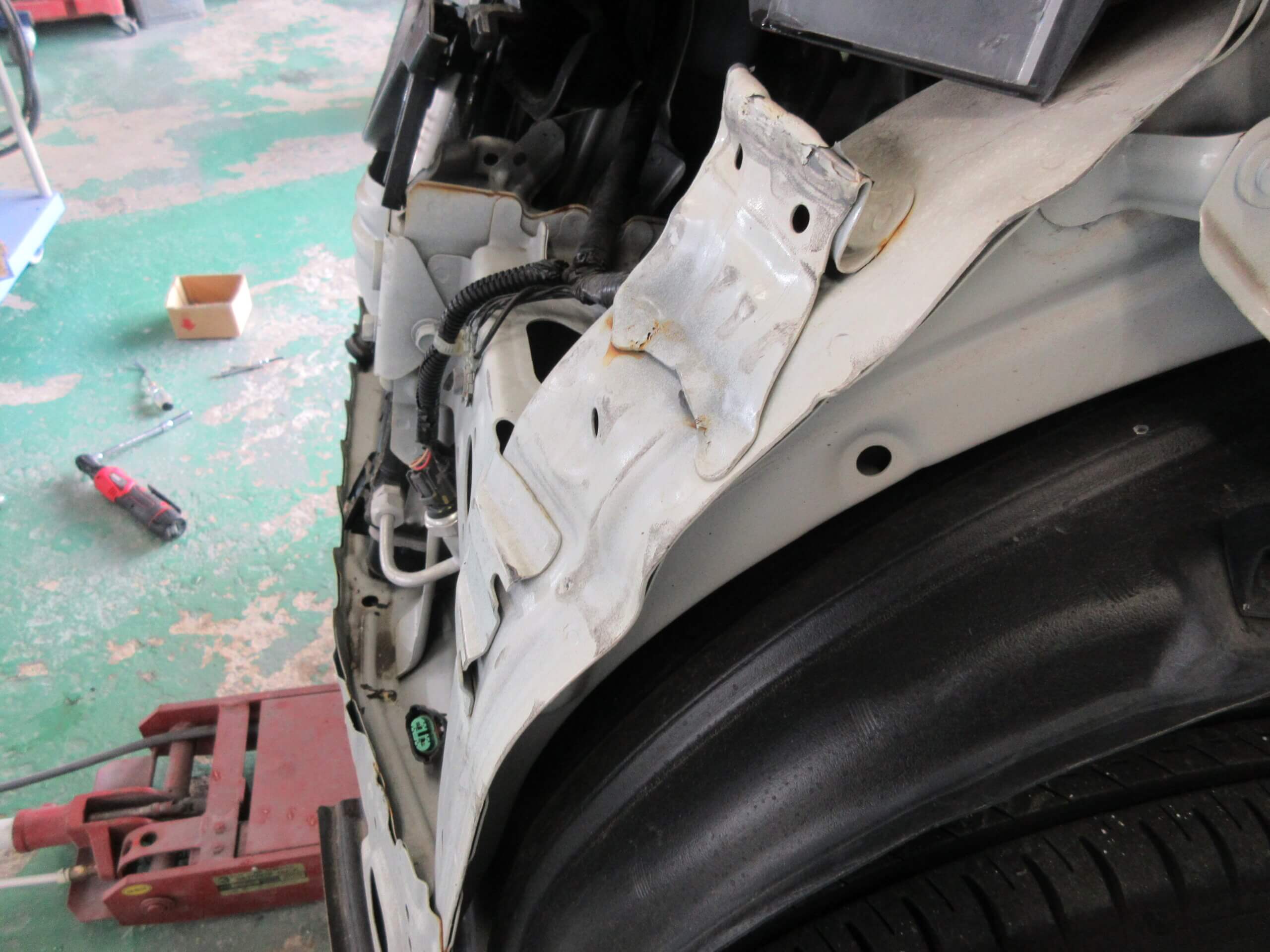 内板関係は、全ラジエータサポート・ラジエータ・エアコンコンデンサ等の交換とフェンダエプロン関係の修理となります。