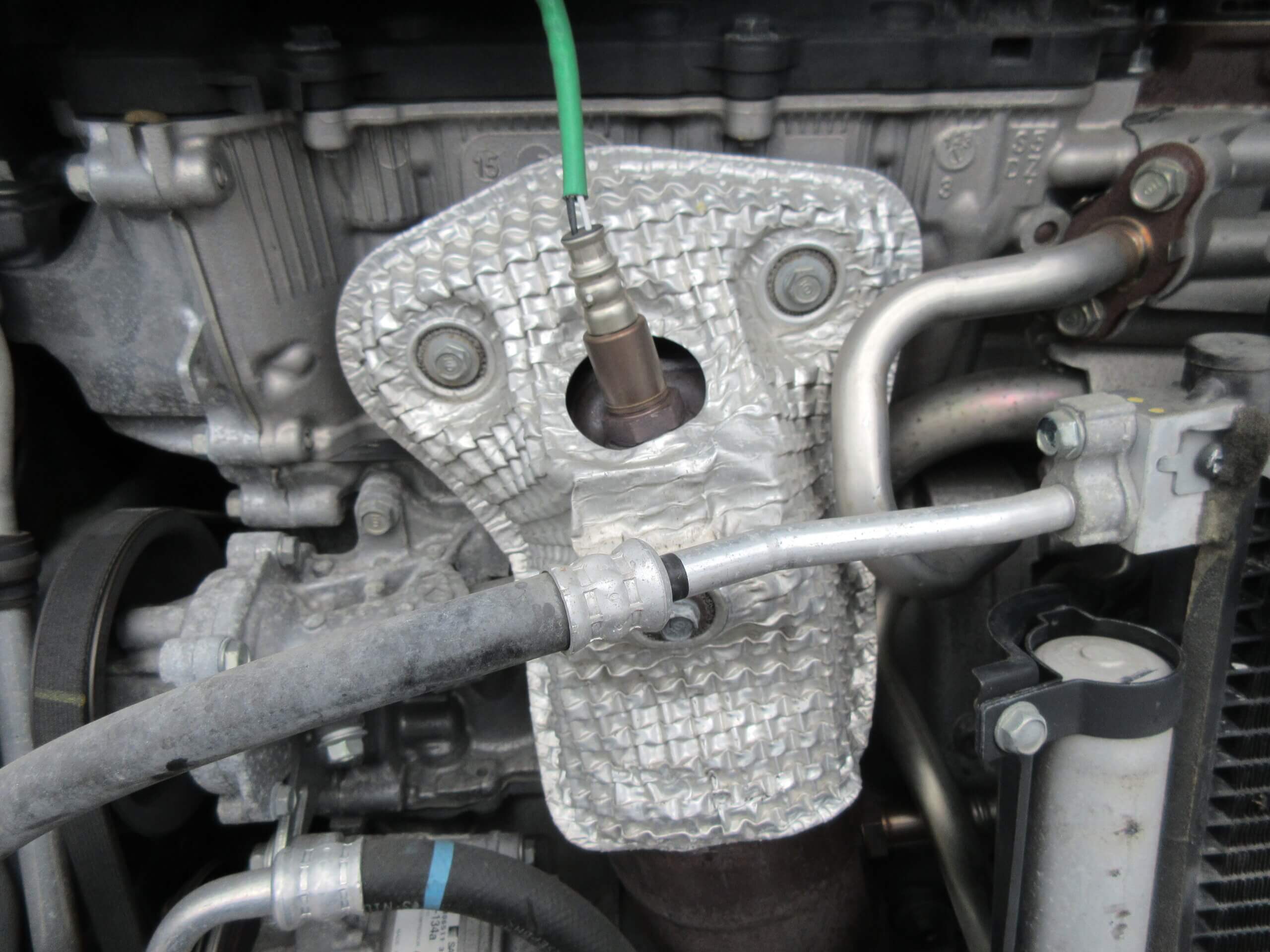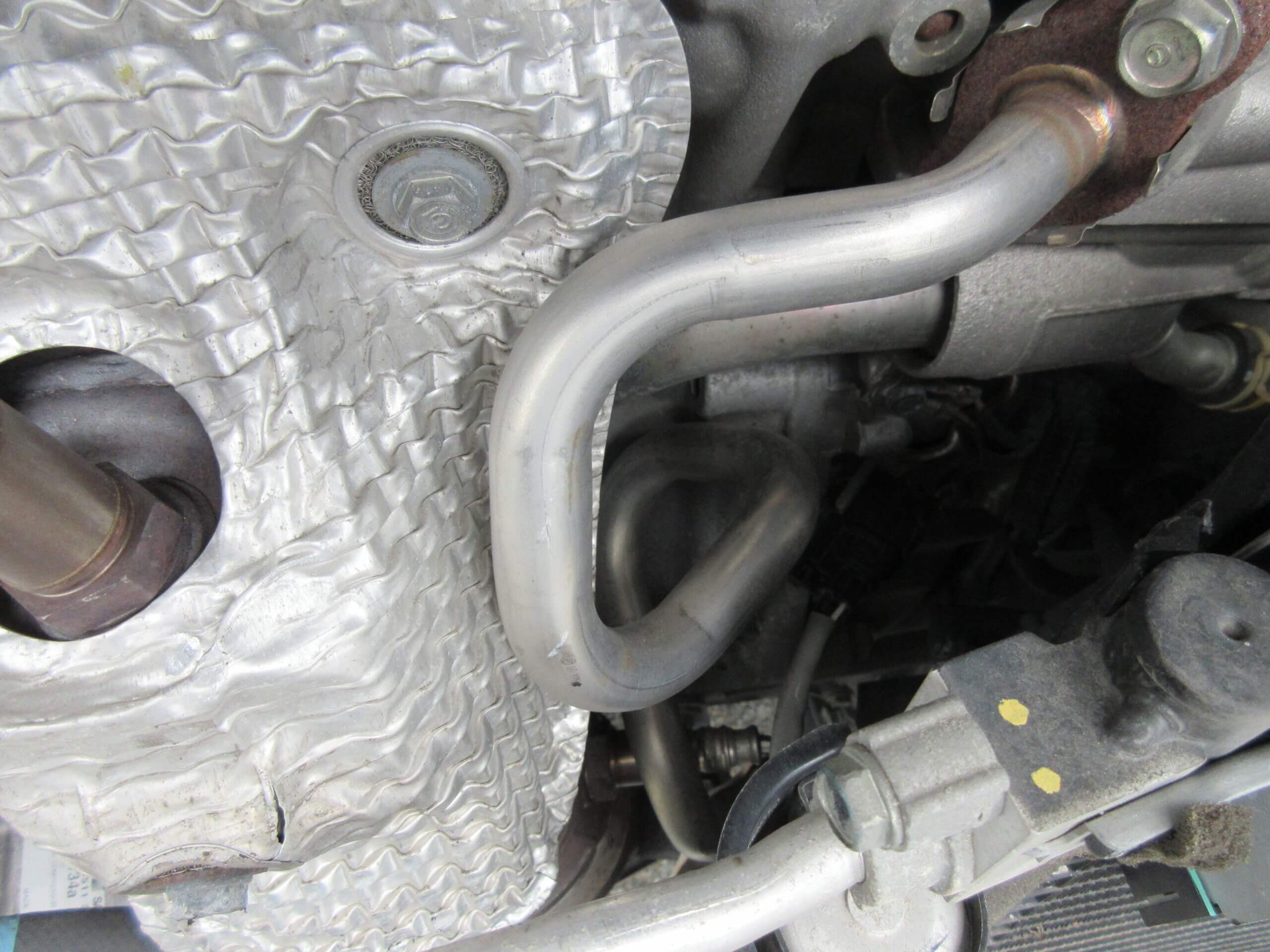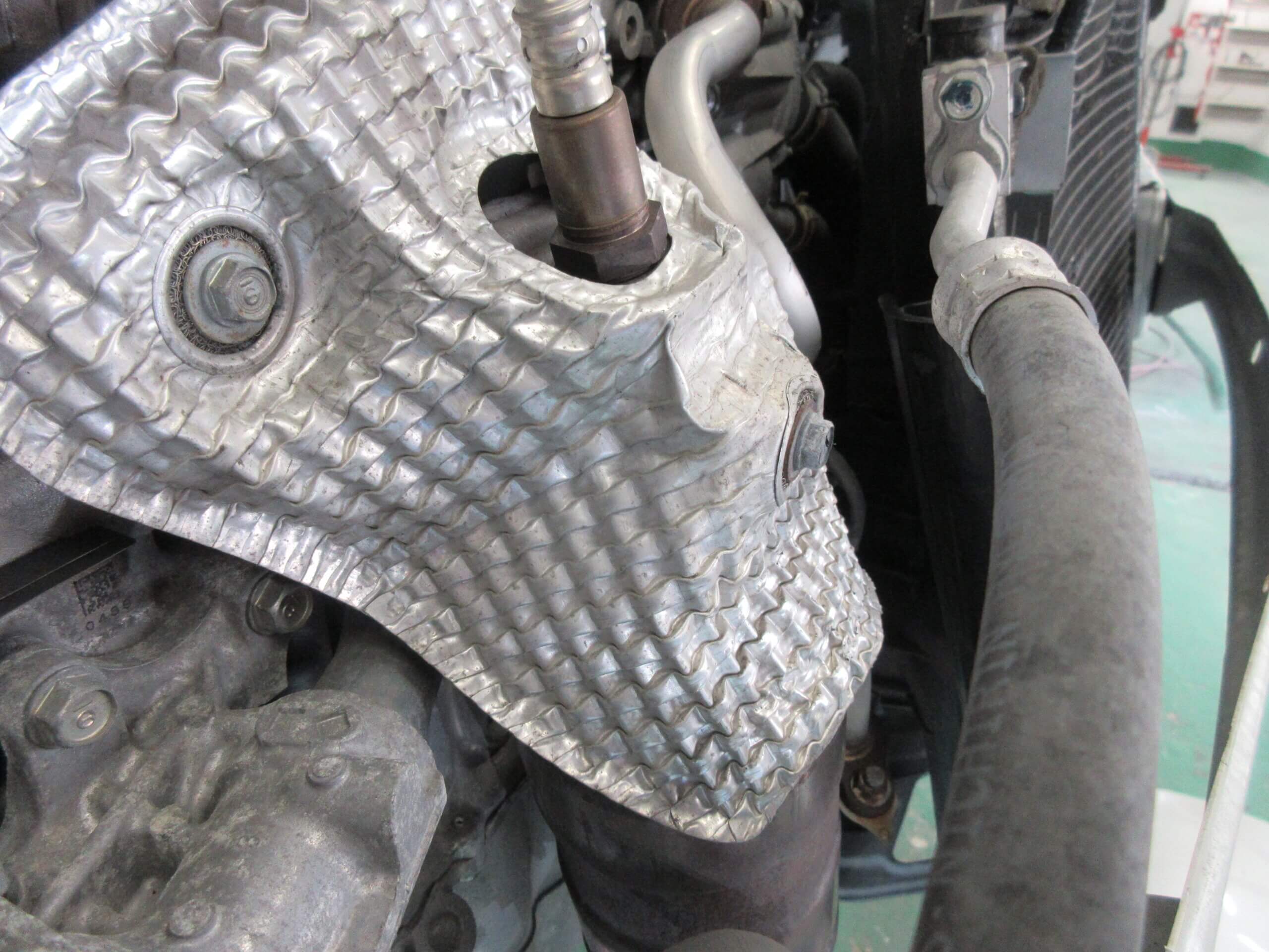 エンジンの冷却水パイプがマフラーに干渉しています。