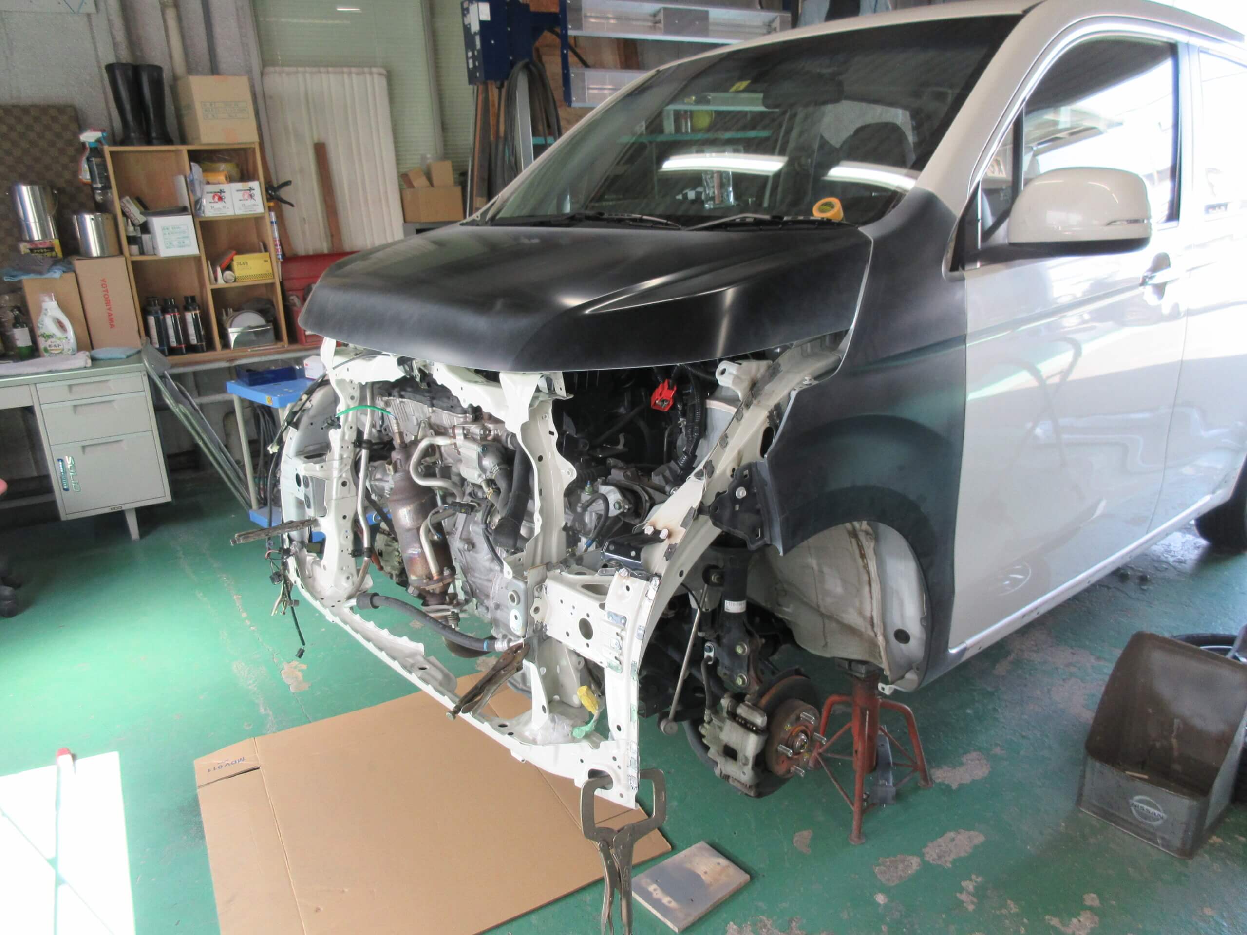 前回りの部品を取り外して、骨格の修理と修正を行っていきます。