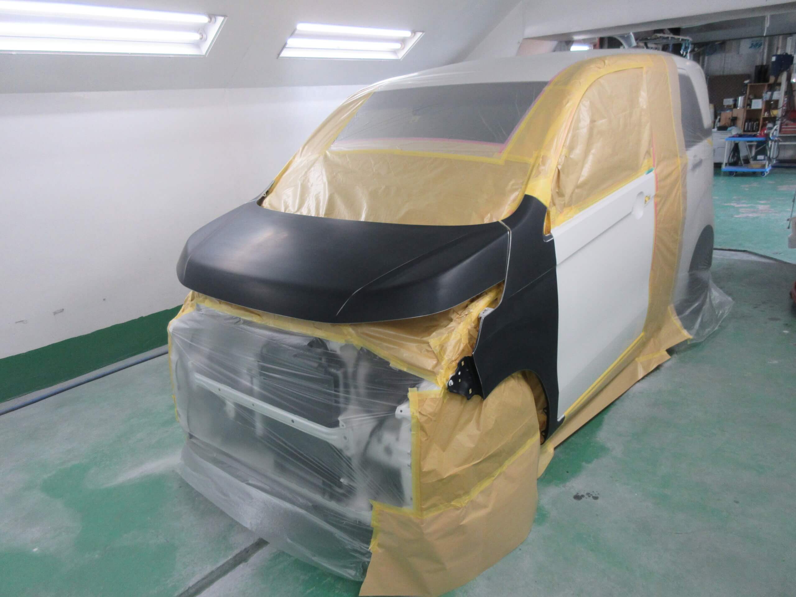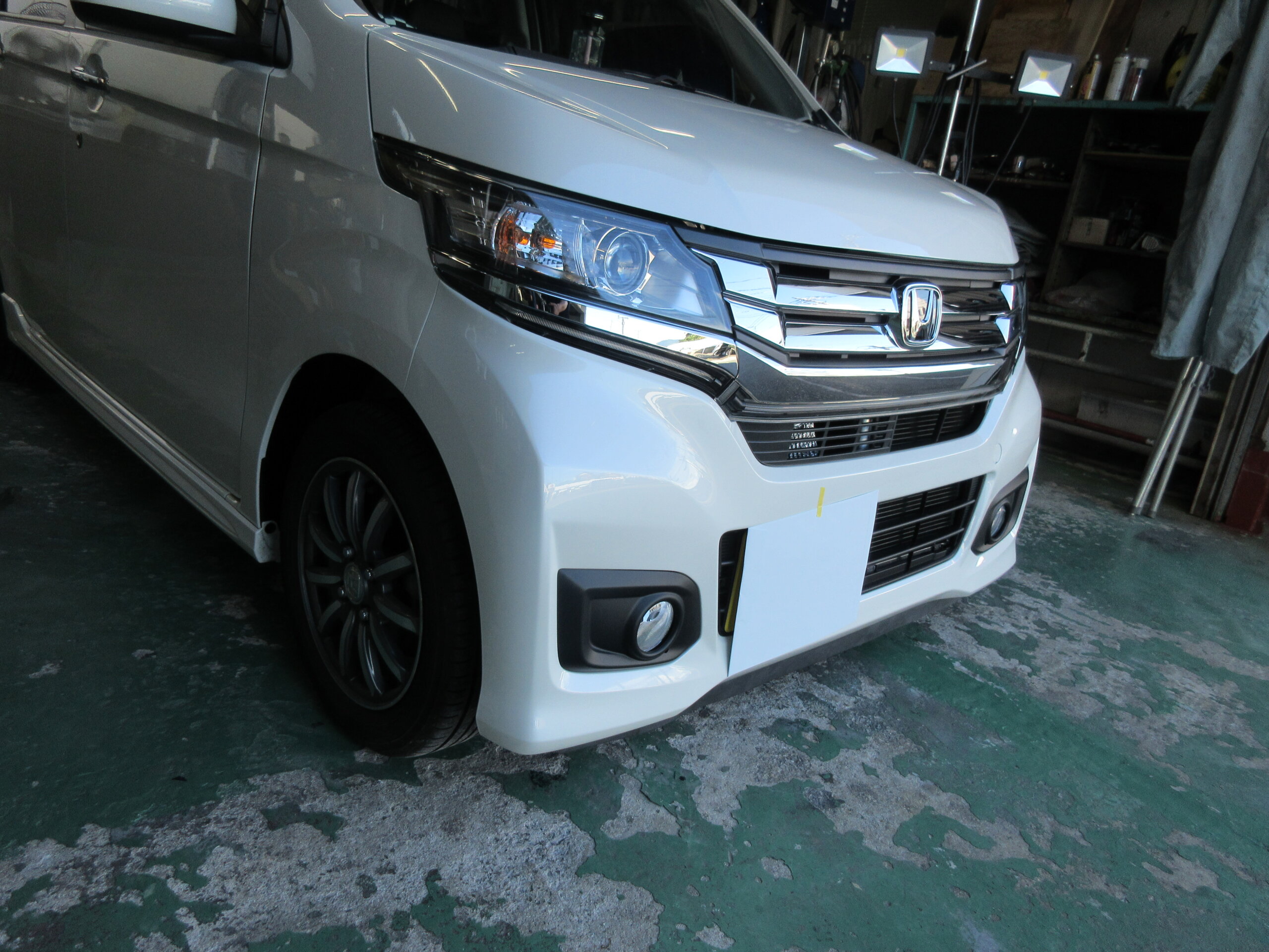 磨き処理後にヘッドライト・バンパ関係の取付を行います。