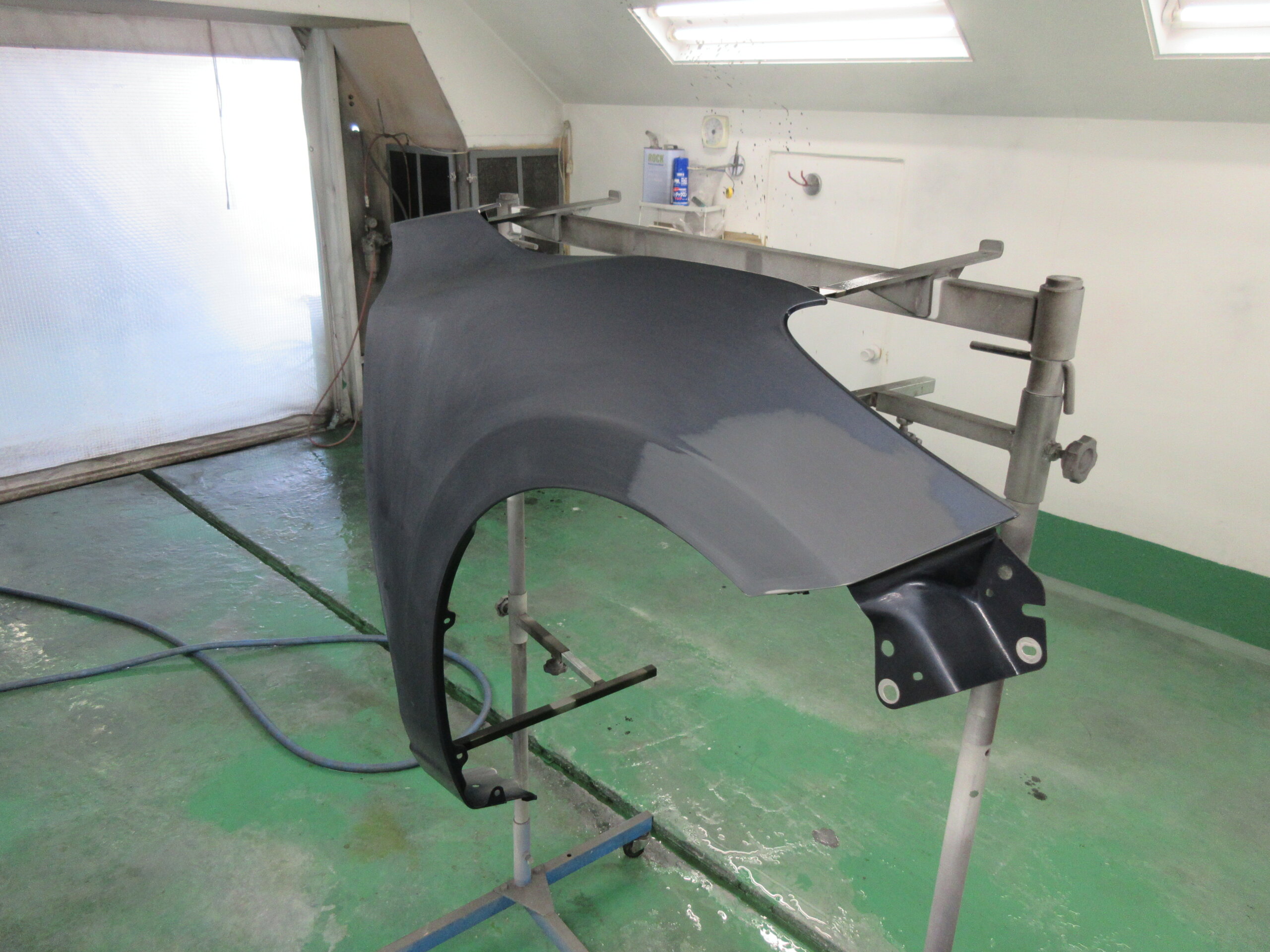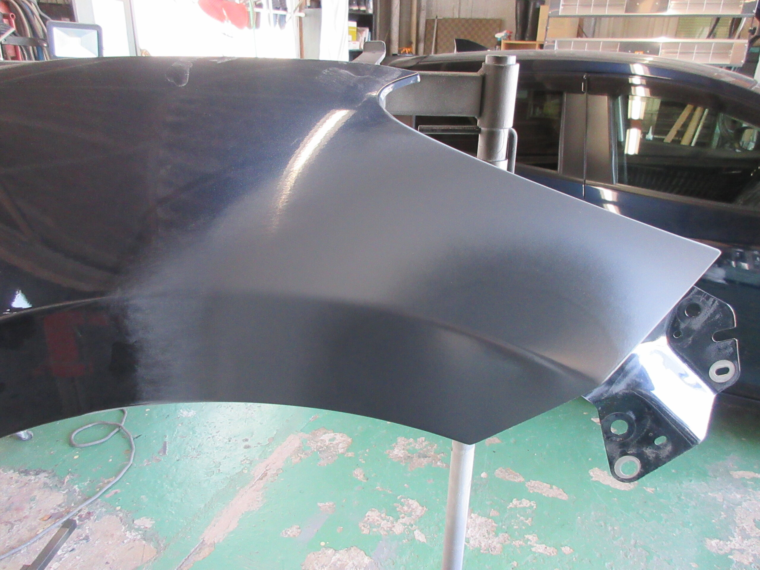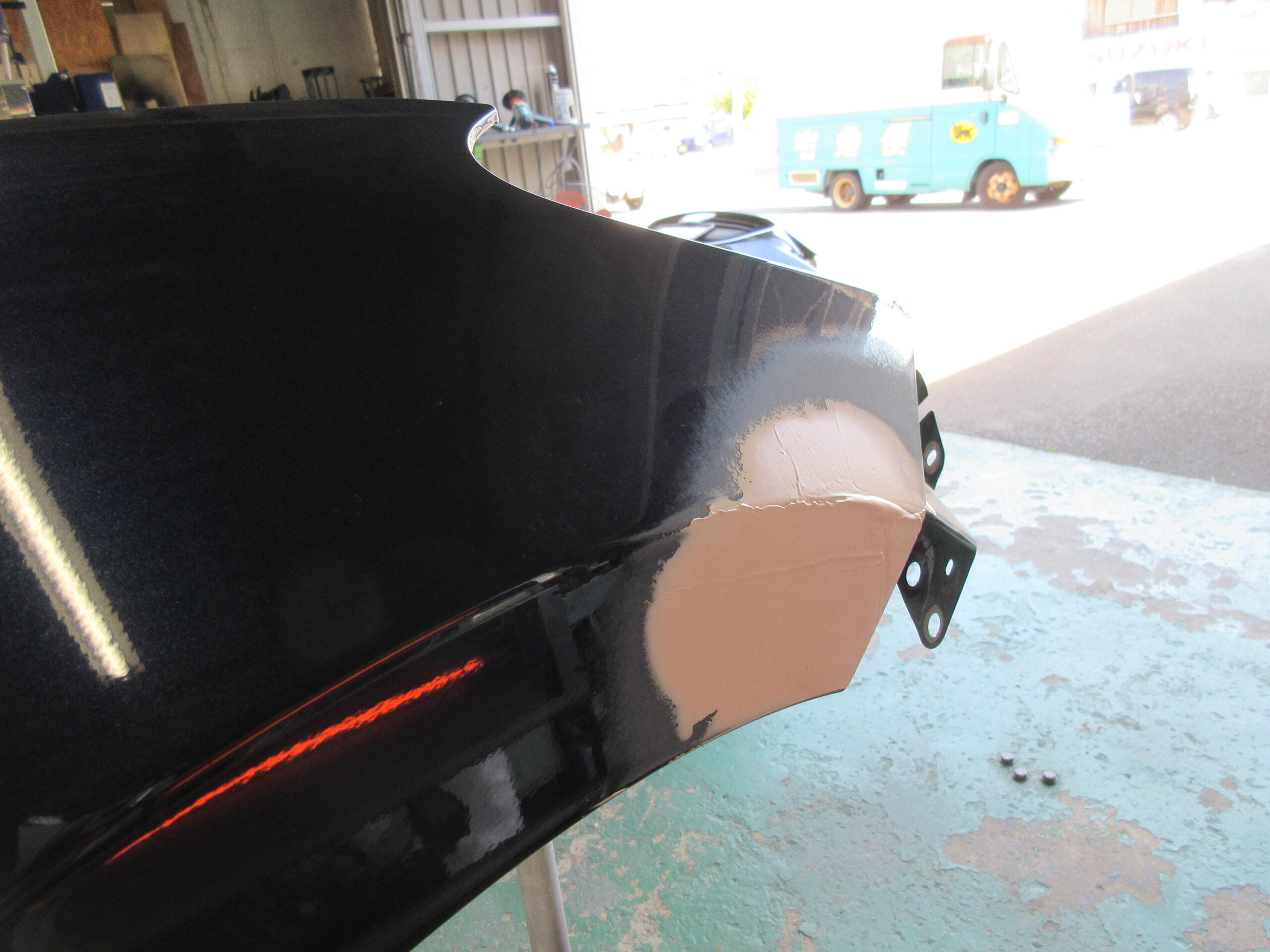 フェンダパネルを取外して、修理&パテ施工を行います。