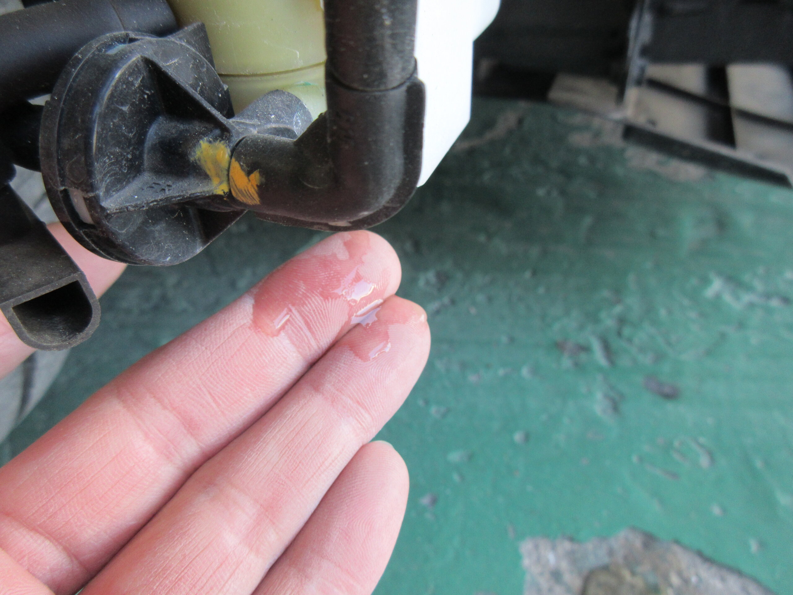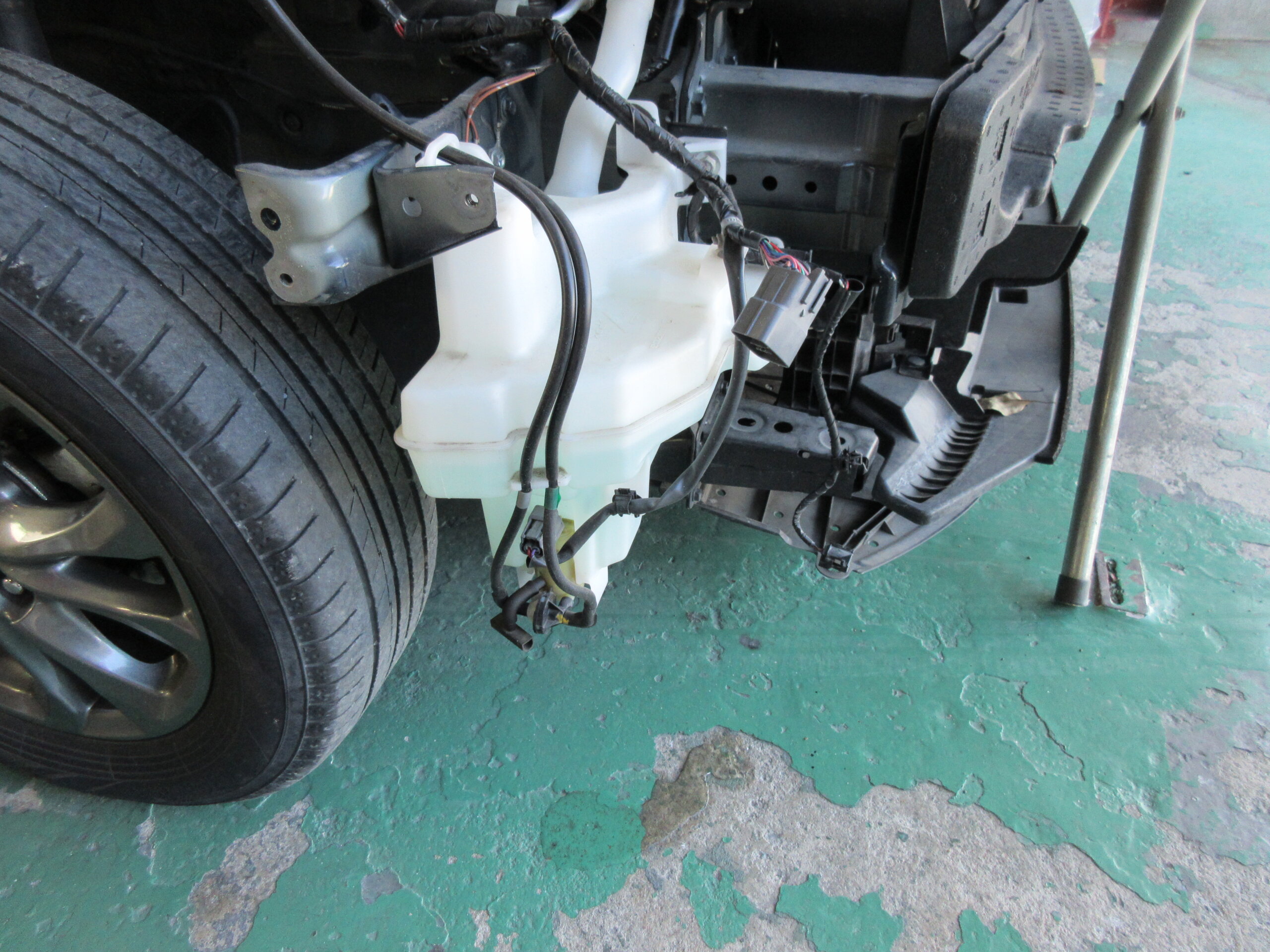 当初の予定では、フロントフェンダパネルの修理とフロントバンパの交換でしたが、ウォッシャタンクから水漏れがあることが分かりました。