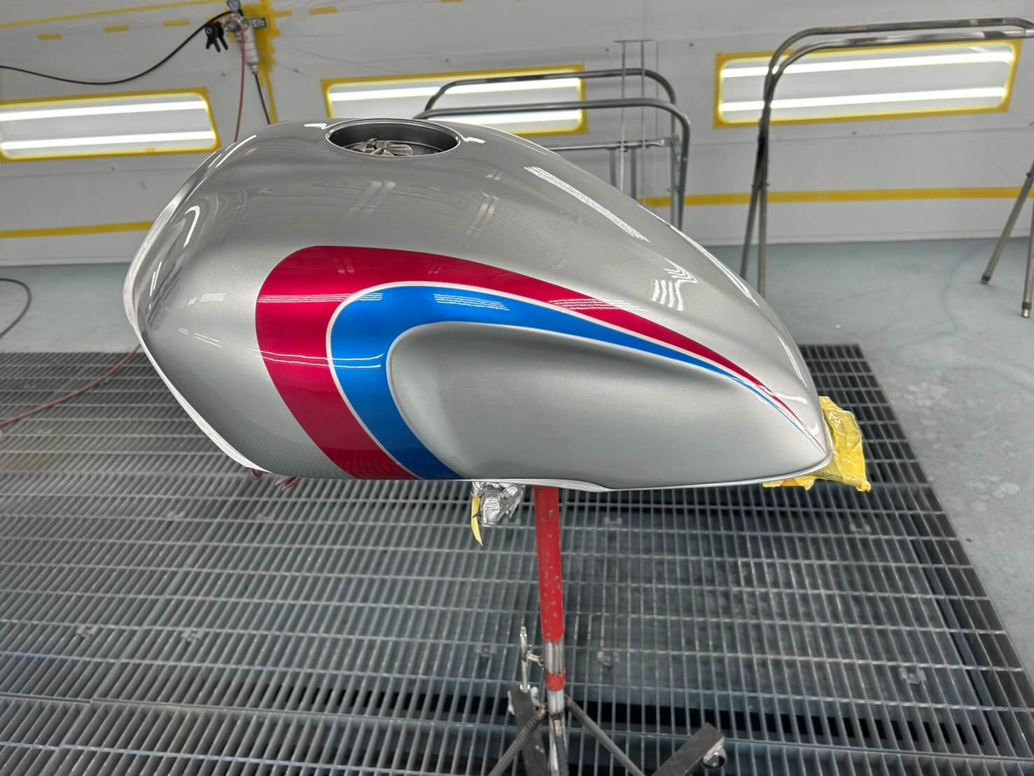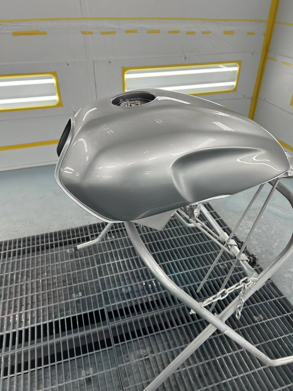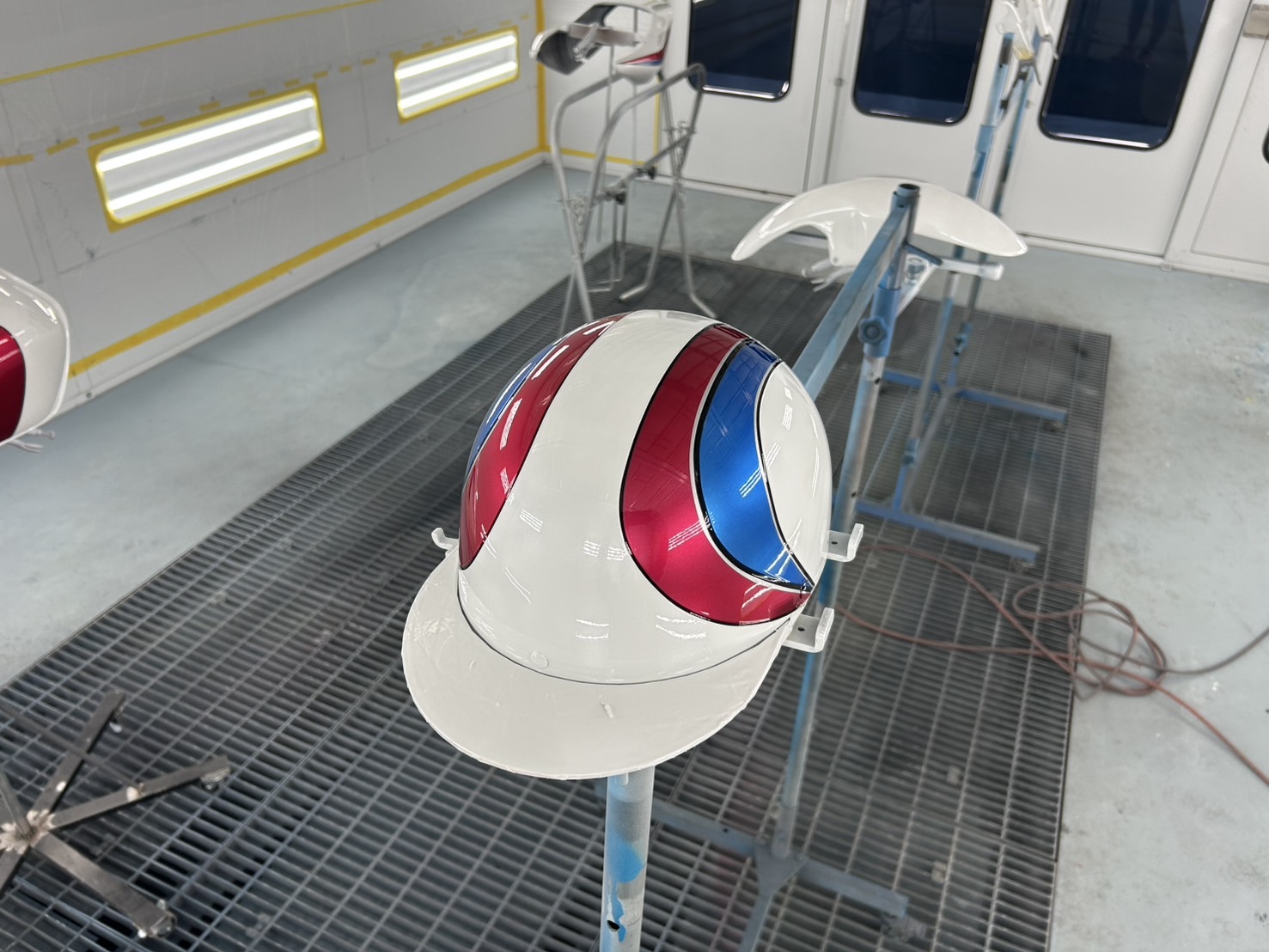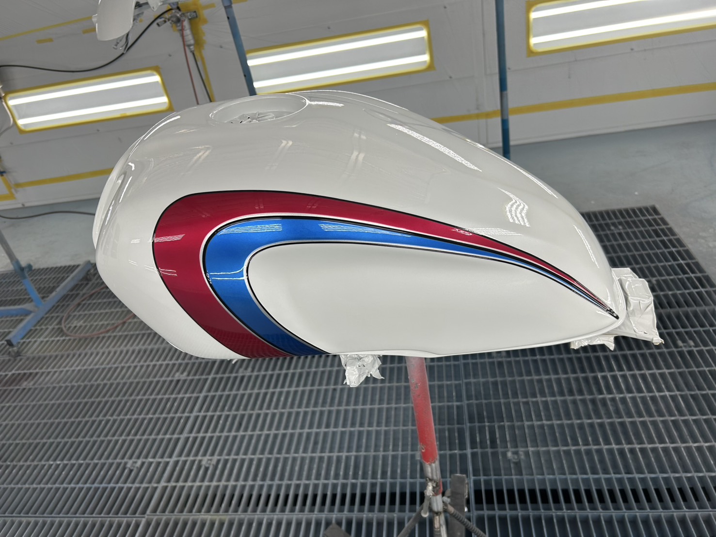 今回のカスタム塗装は、パールホワイトを基調としてシルバー・ピンク・ブルーのアクセントカラーが入り塗り分けは4工程となりました。