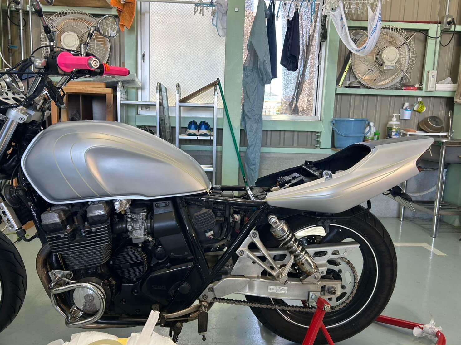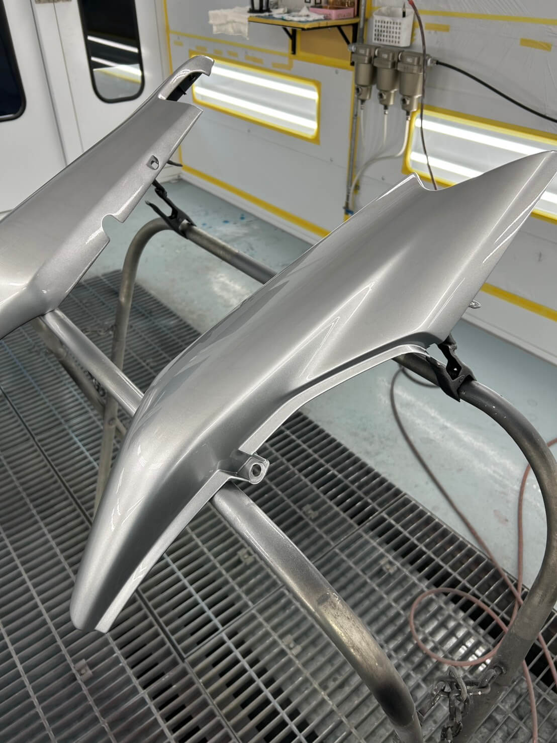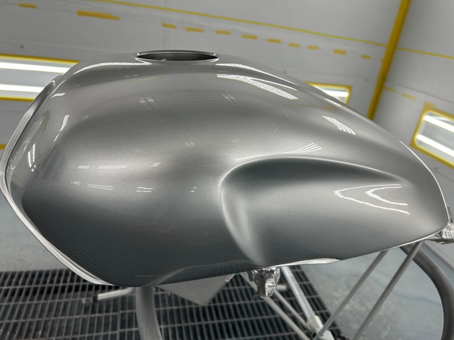 今回のカスタム塗装は、パールホワイトを基調としてシルバー・ピンク・ブルーのアクセントカラーが入り塗り分けは4工程となりました。