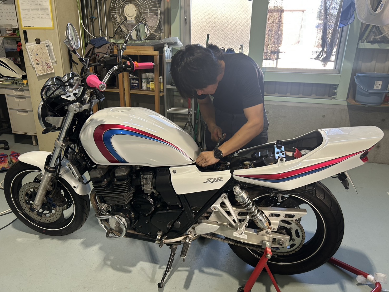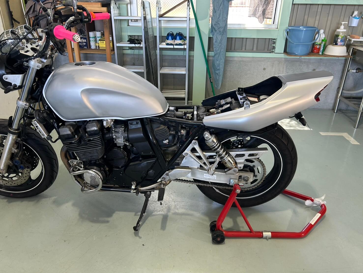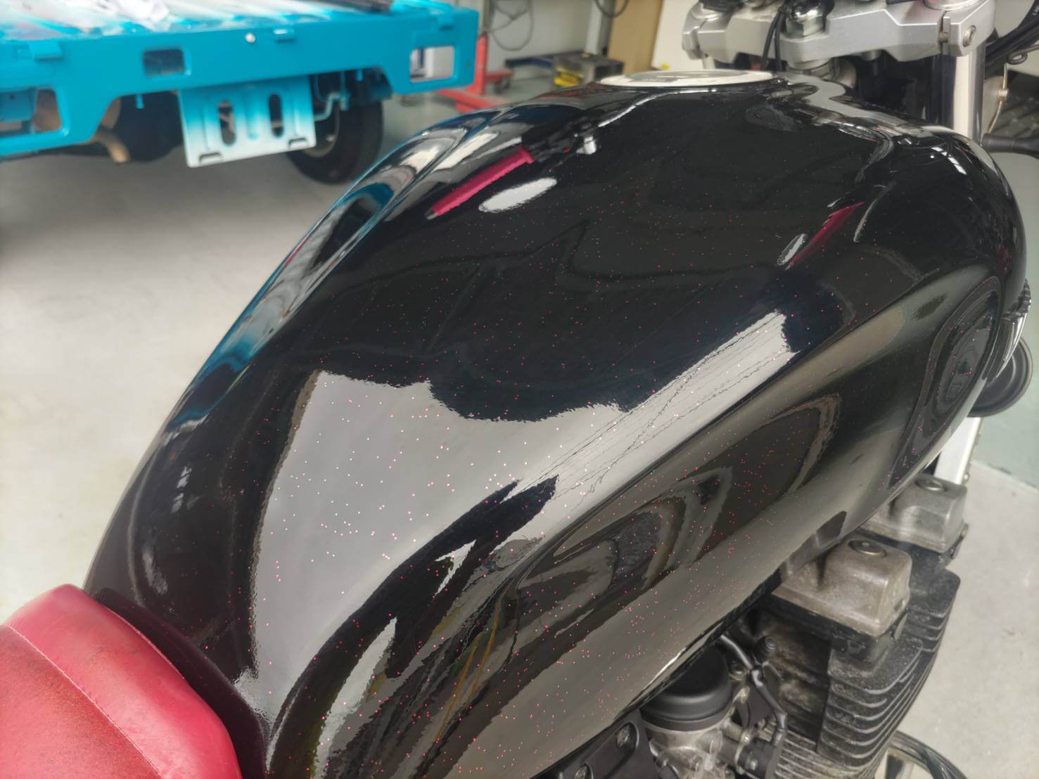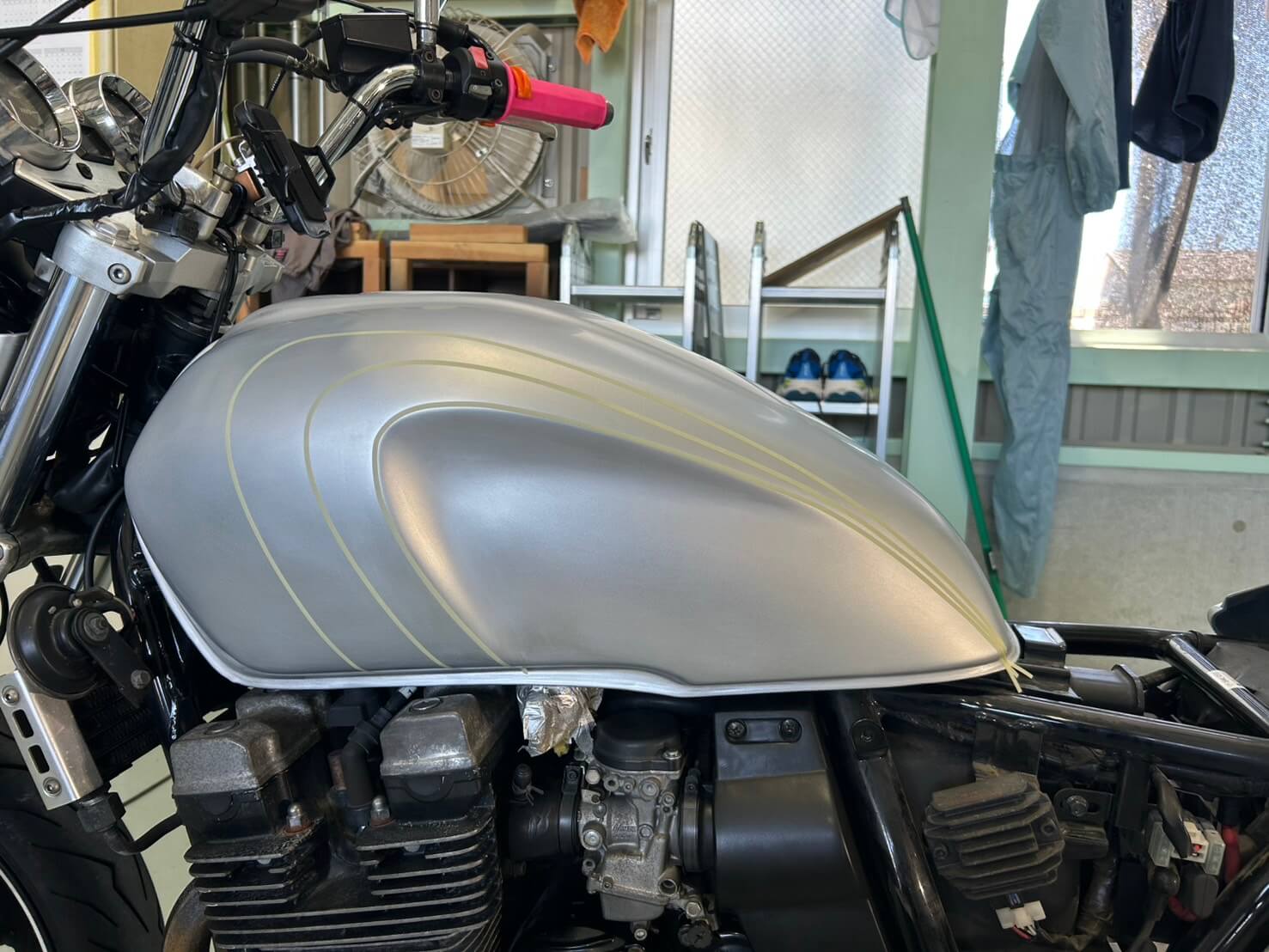 今回のカスタム塗装は、パールホワイトを基調としてシルバー・ピンク・ブルーのアクセントカラーが入り塗り分けは4工程となりました。